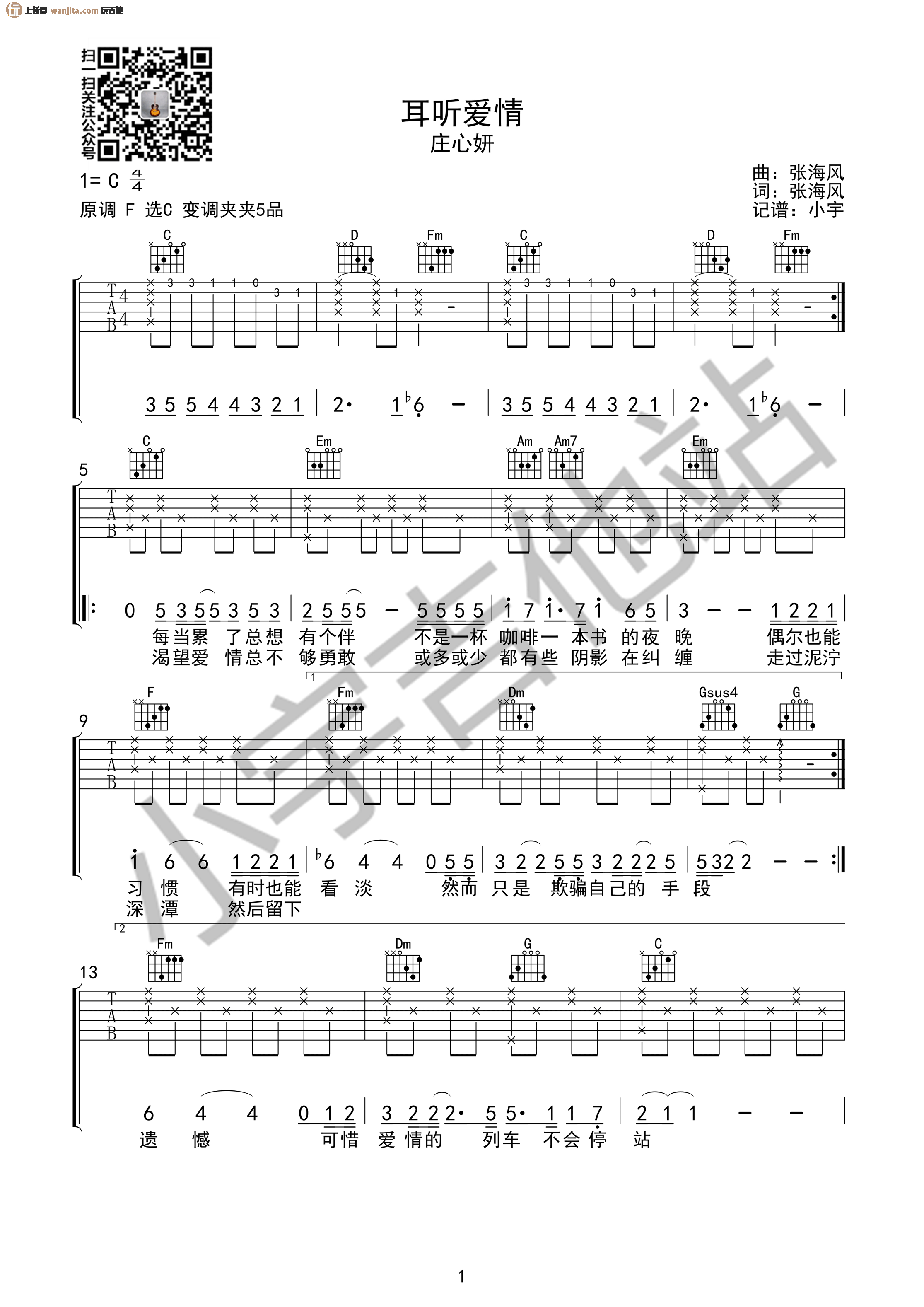 庄心妍的《耳听爱情》是一首非常受欢迎的情歌,吉他弹唱时需要注意以下问题: