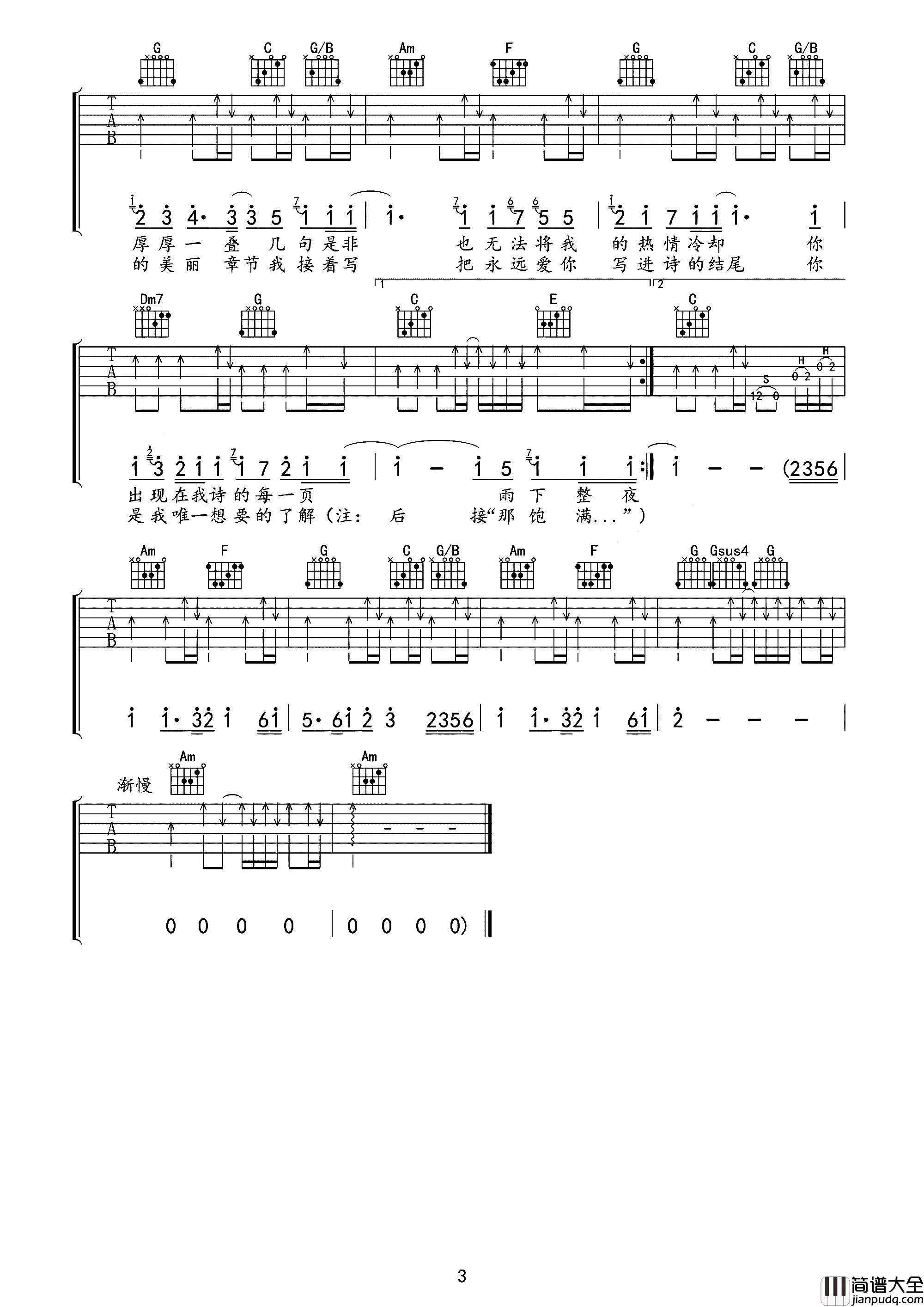 3. "指法":吉他指法要准确,特别是和弦的指法,确保每个和弦的音色饱满。