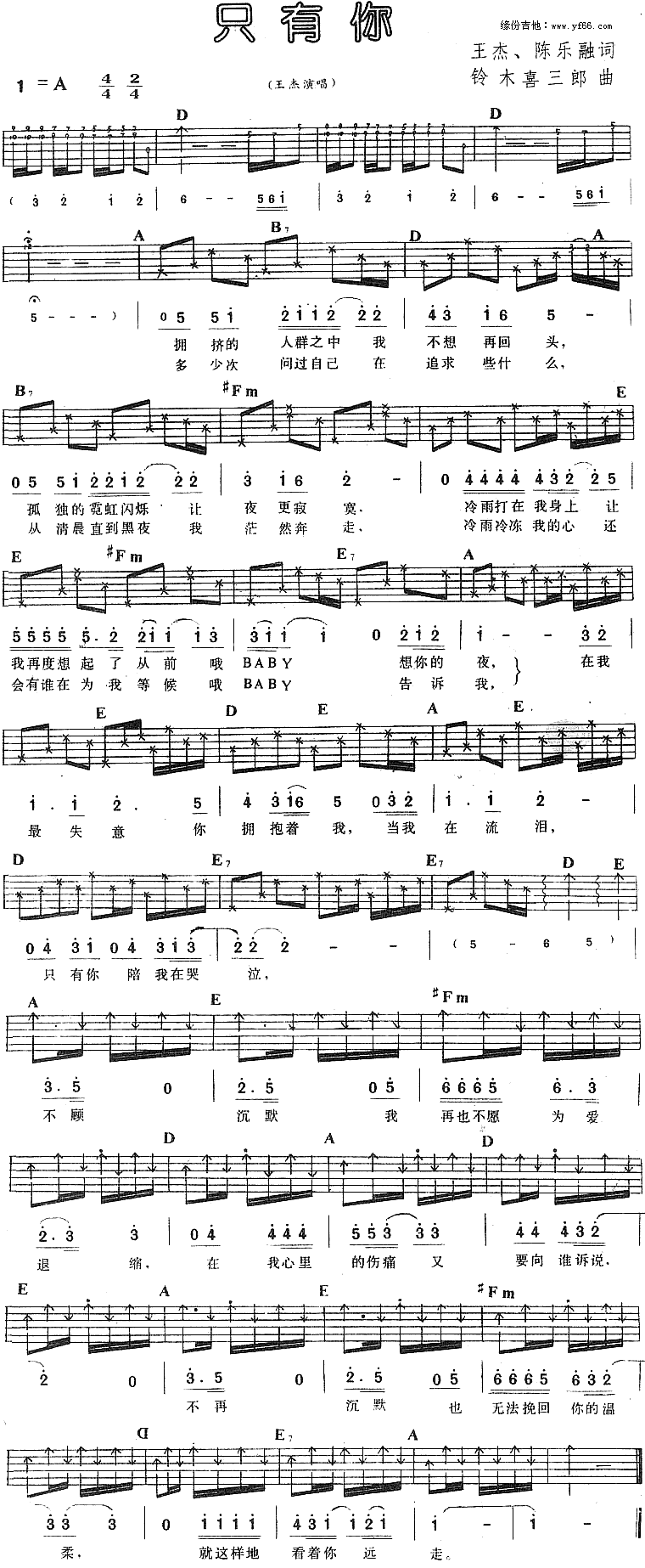 - 《只有你》中有几个重要的和弦转换,如从C和弦到Am和弦,再到F和弦。在转换时,要确保和弦转换自然,不要生硬。