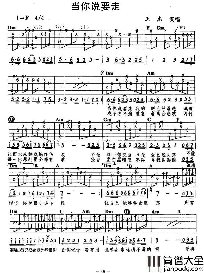 1. "和弦选择":选择合适的和弦是弹唱的基础。王杰的《当你说要走》主要使用C、G、Am、F等和弦,可以根据自己的喜好和技巧适当变化。
