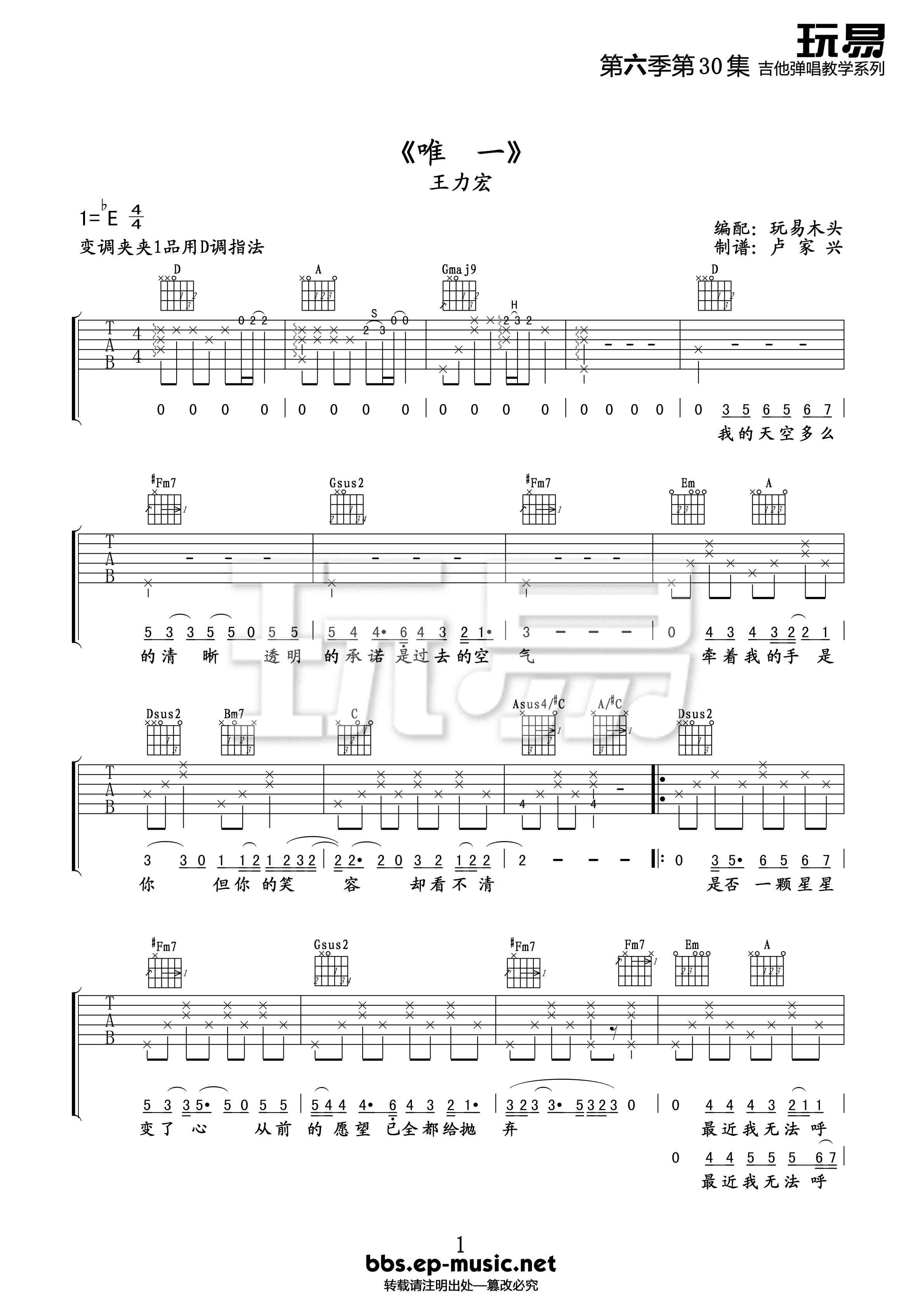 《唯一》弹奏技巧