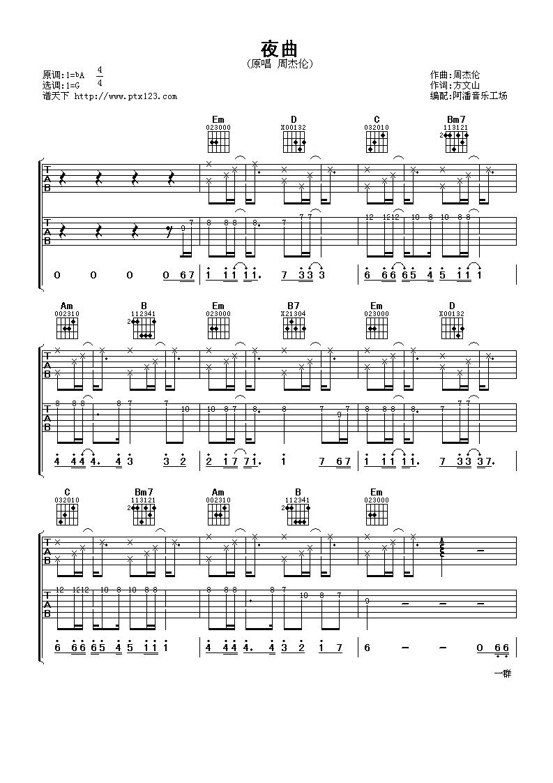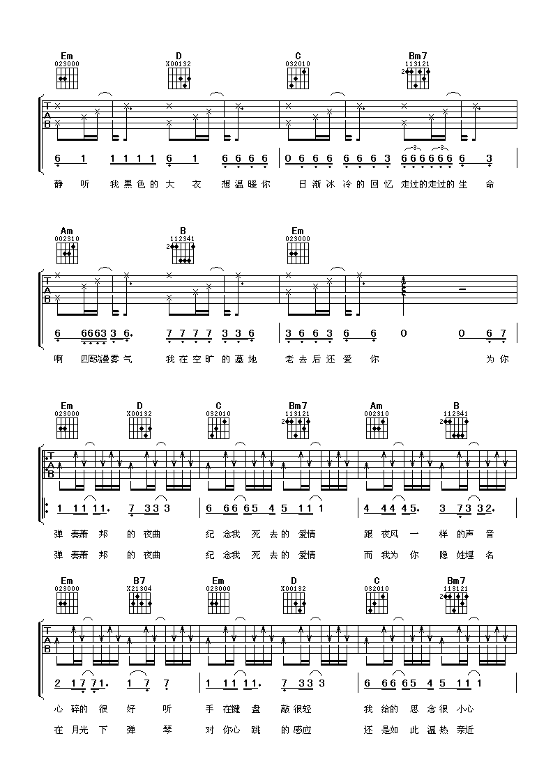 - 《夜曲》中的和弦转换较为复杂,需要练习好和弦的准确性,避免在转换时出现断音或跑音。