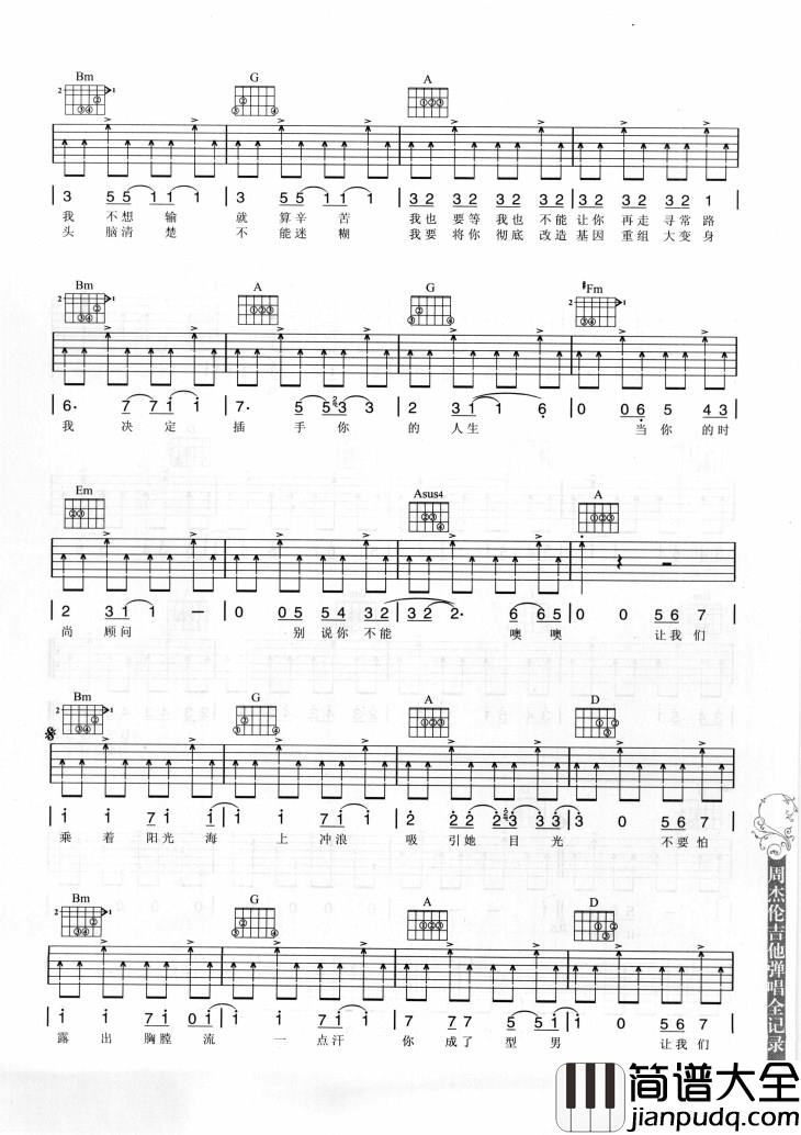 - "情感投入":周杰伦的吉他弹唱富有情感,要学会将自己的情感融入歌曲中。