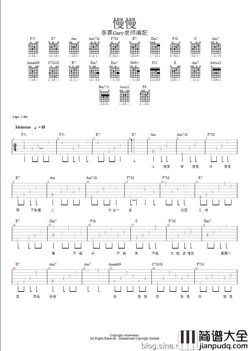- 《慢慢》是一首充满情感的歌曲,弹唱时要注意情感的表达,让听众感受到歌曲的内涵。