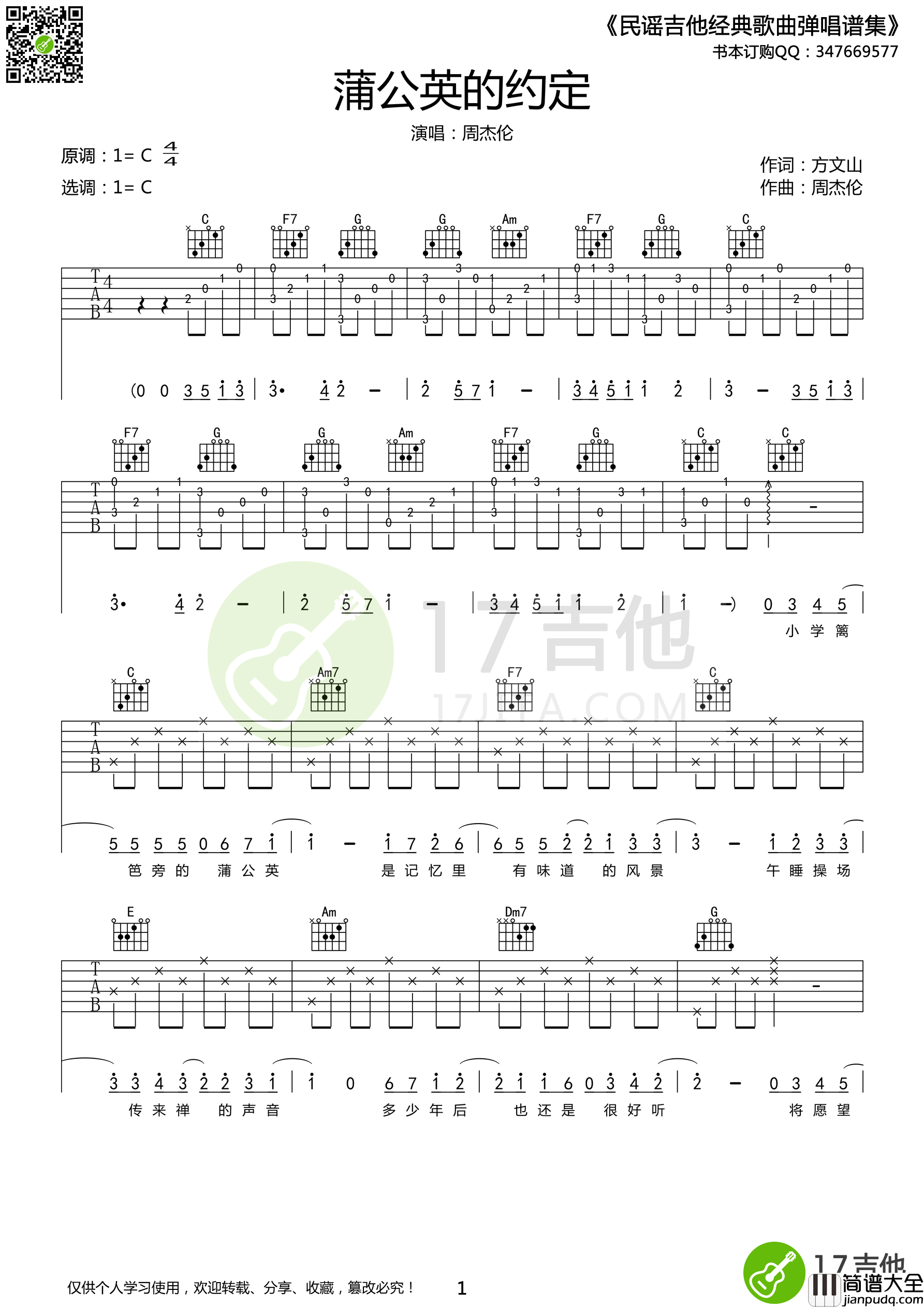 周杰伦的《蒲公英的约定》是一首非常受欢迎的歌曲,吉他弹唱时需要注意以下问题: