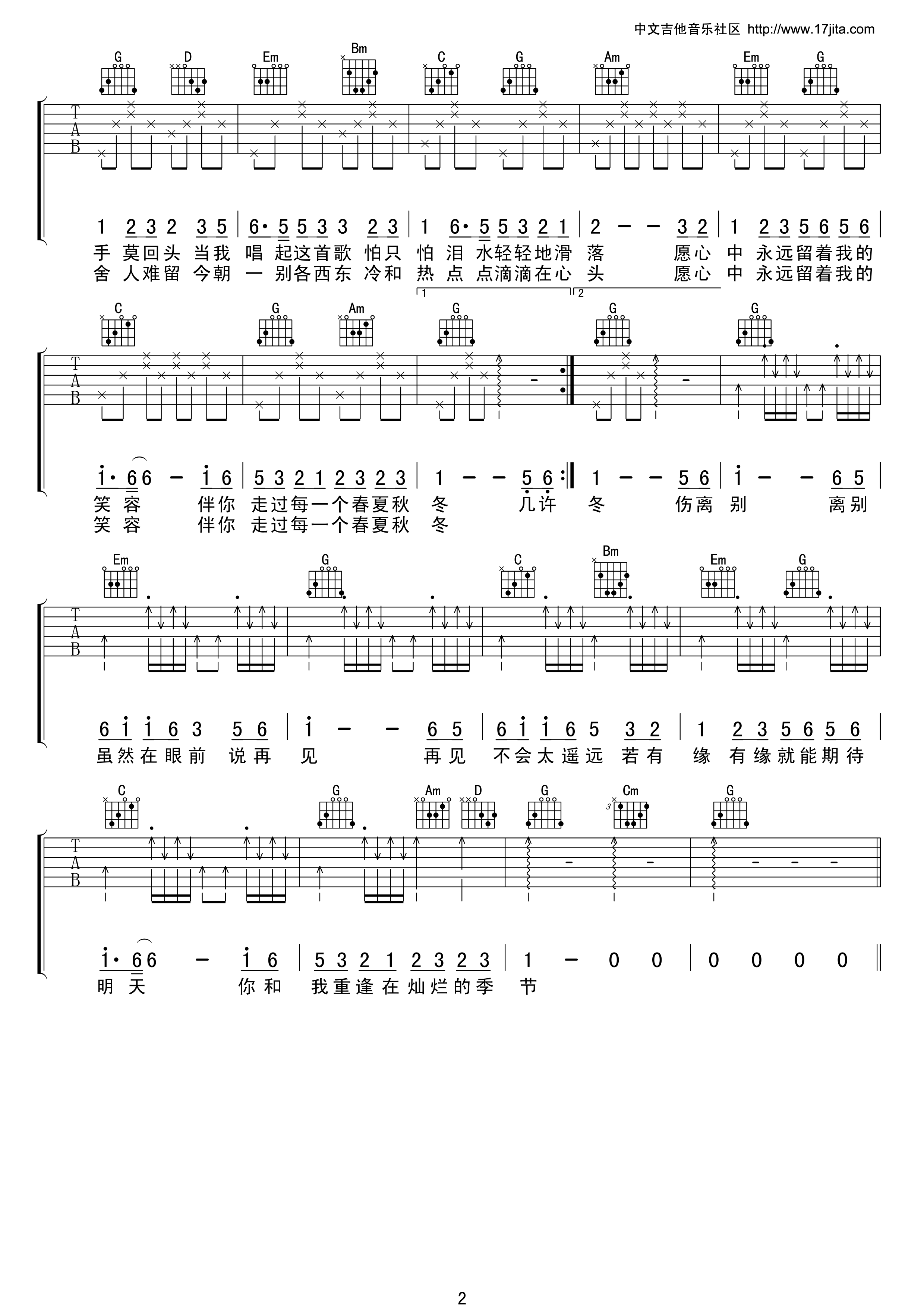 - 在歌曲的高潮部分,可以适当加强吉他的力度和节奏,以突出歌曲的意境。