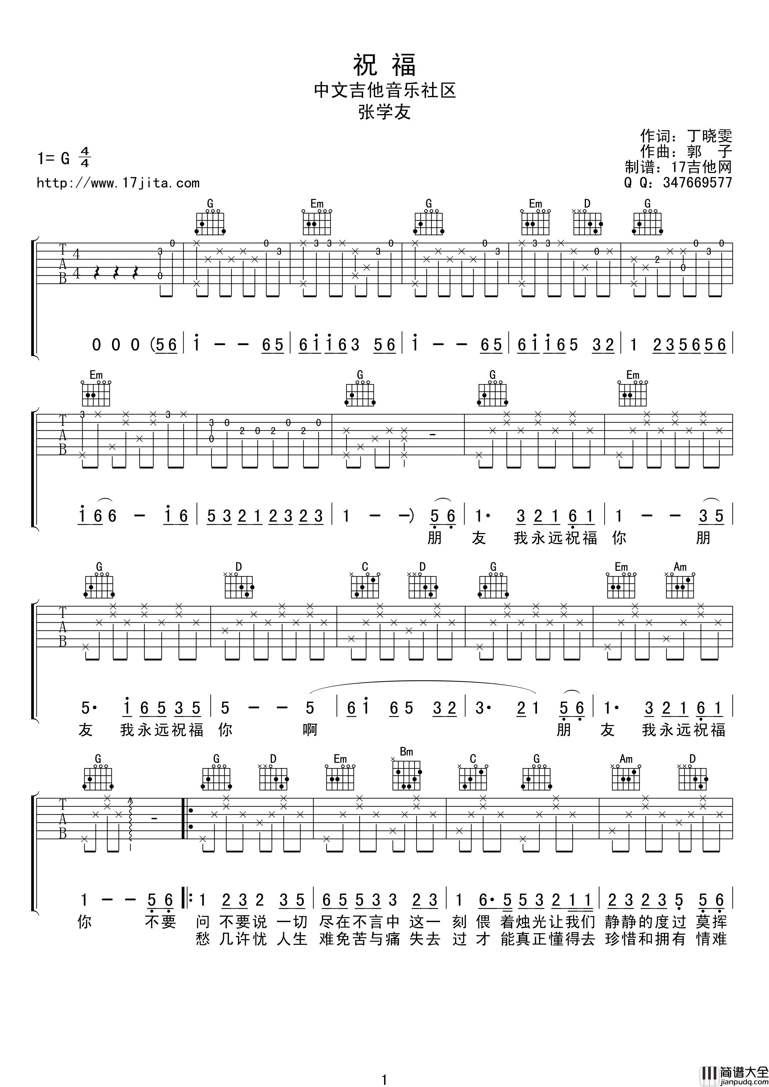 - 《祝福》是一首充满祝福和感慨的歌曲,弹唱时要注意情感的表达。
