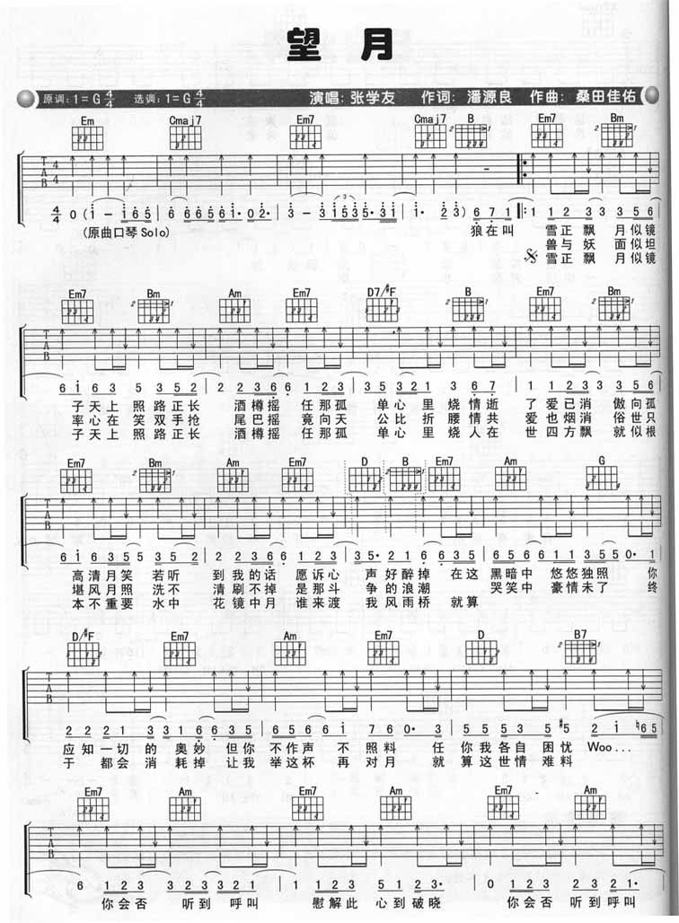 张学友的《望月》是一首非常经典的吉他弹唱曲目,以下是一些弹唱时需要注意的问题: