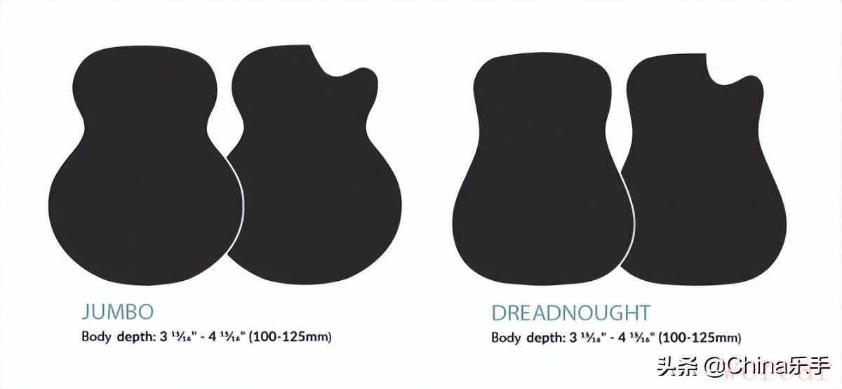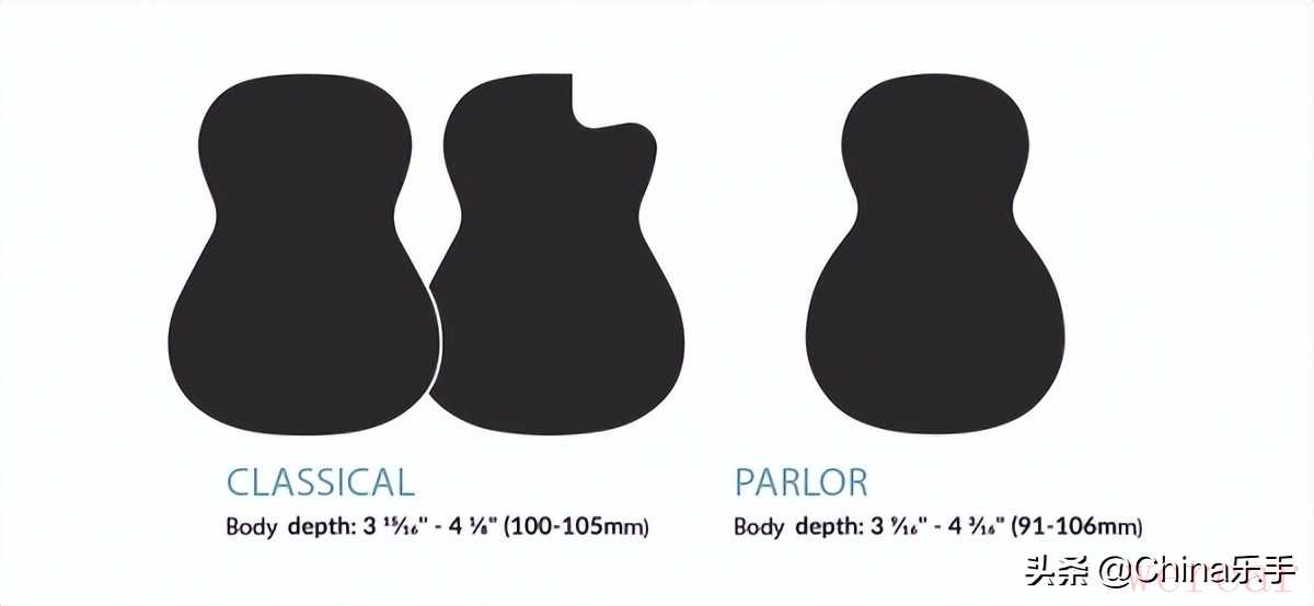 除了木头外,相较于可以使用不同拾音器、效果器以及音箱等去改变音色的电吉他,琴体的形状及尺寸对于木吉他的音色来说都有很重要的影响。