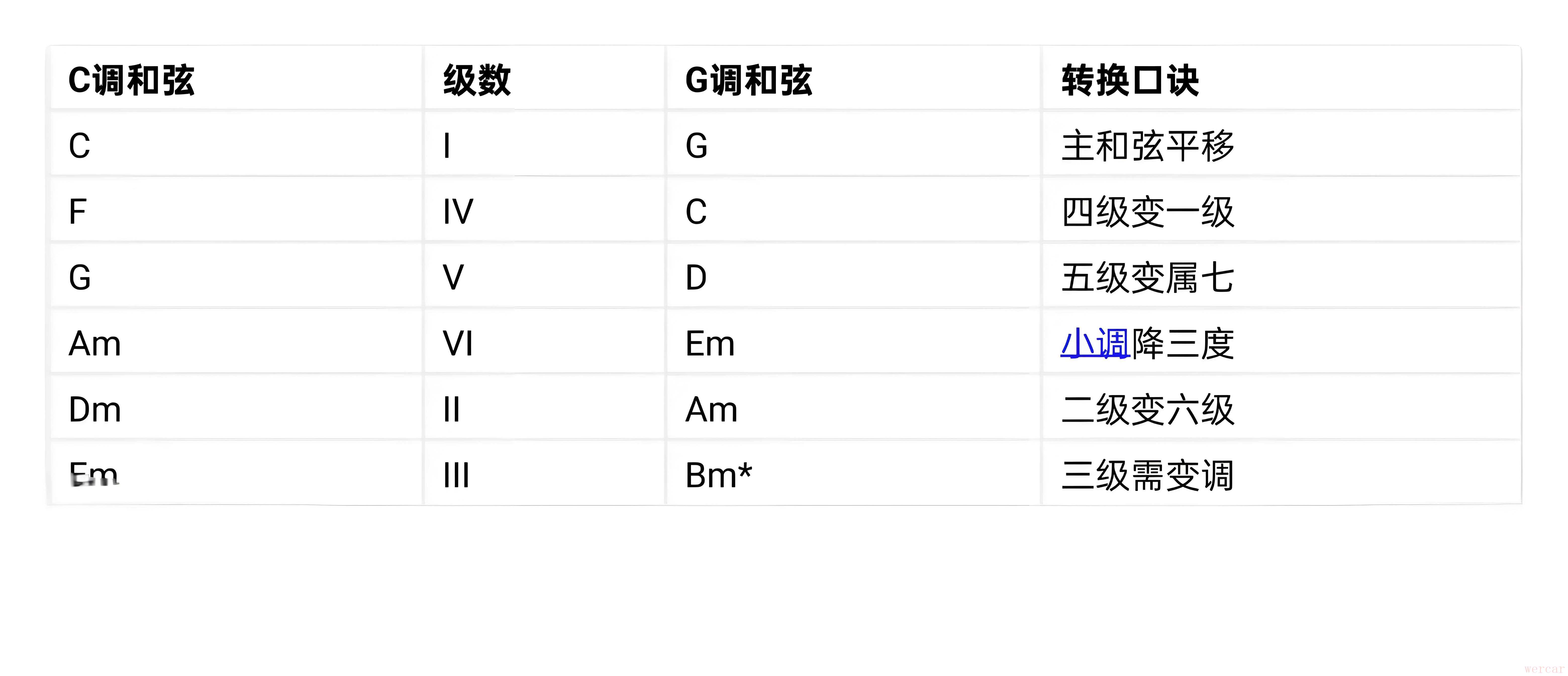 C调与G调转换的本质是级数对应关系,掌握这张转换表即可通杀90%流行歌曲: