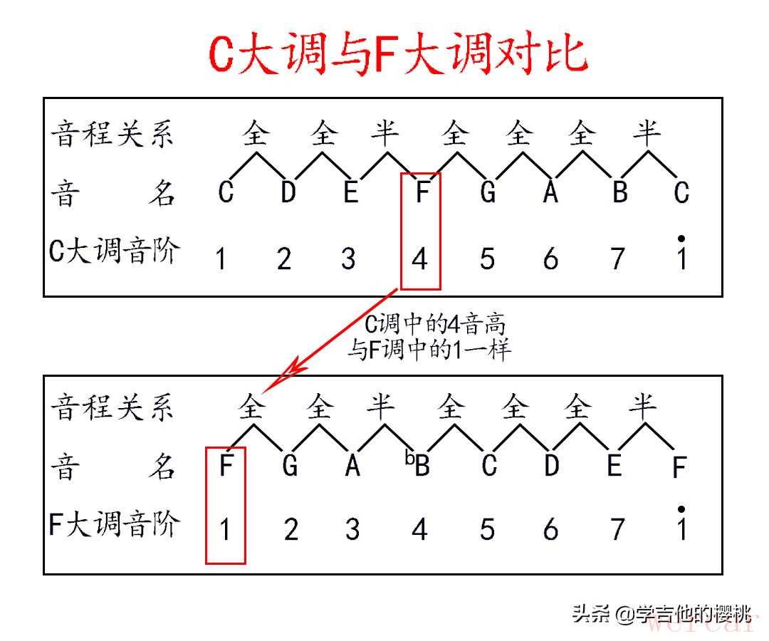 就是把基本调(即C调)中的F(即4音)当作F大调的1(do)音,音高不变。