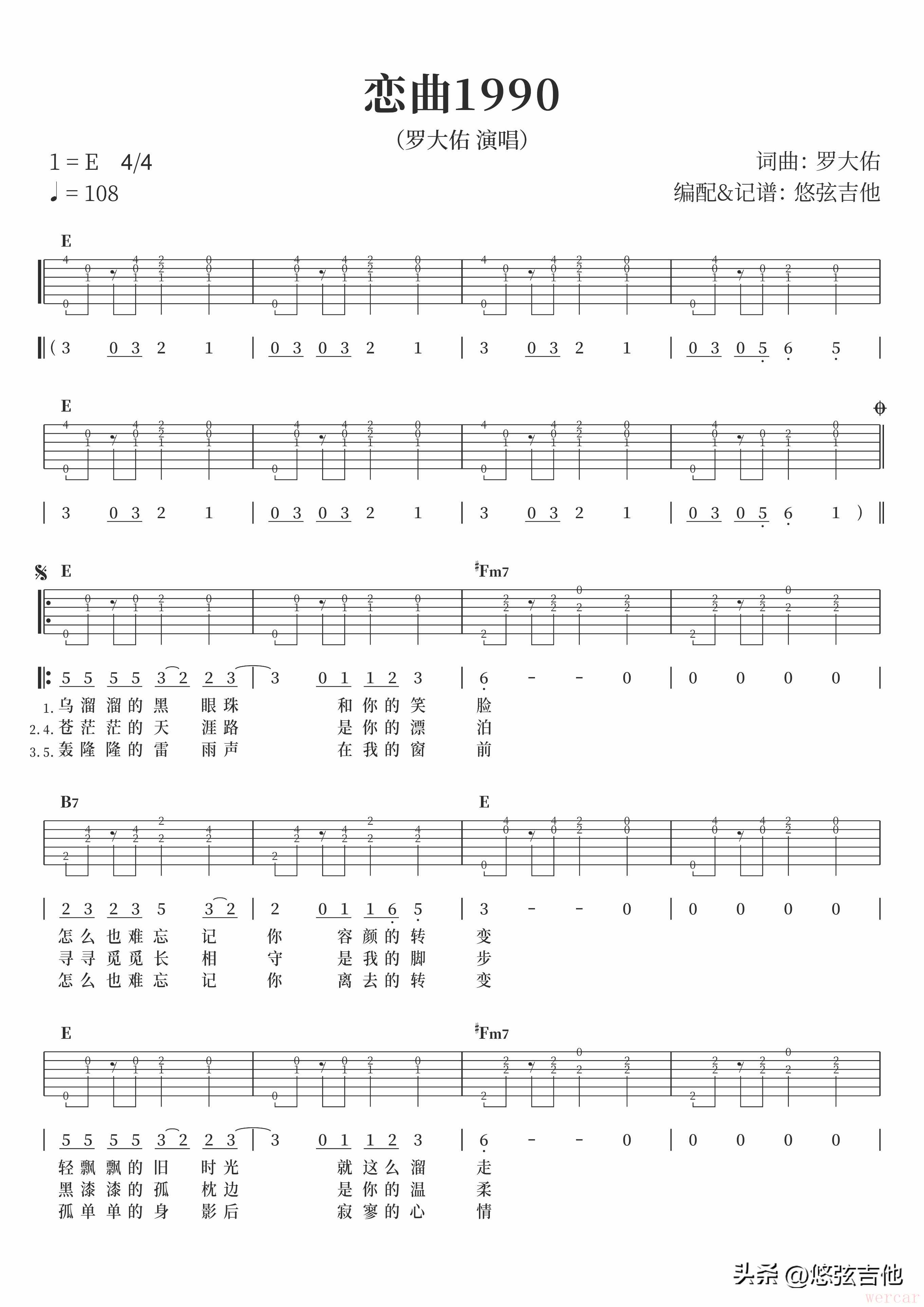 恋曲1990吉他弹唱曲谱免费分享,重温经典旋律,共度美好时光