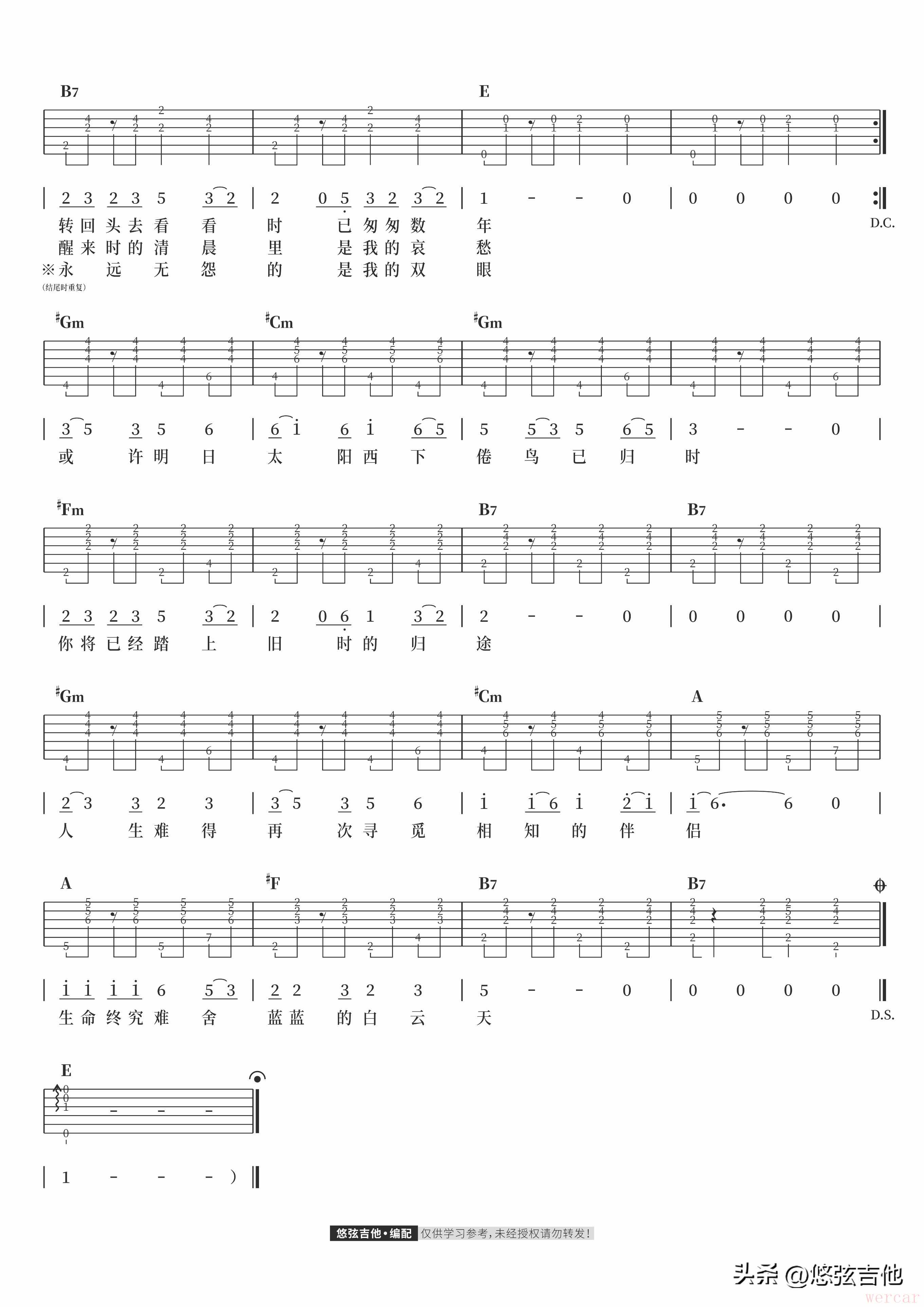 "吉他谱 (和弦版 + 歌词)"