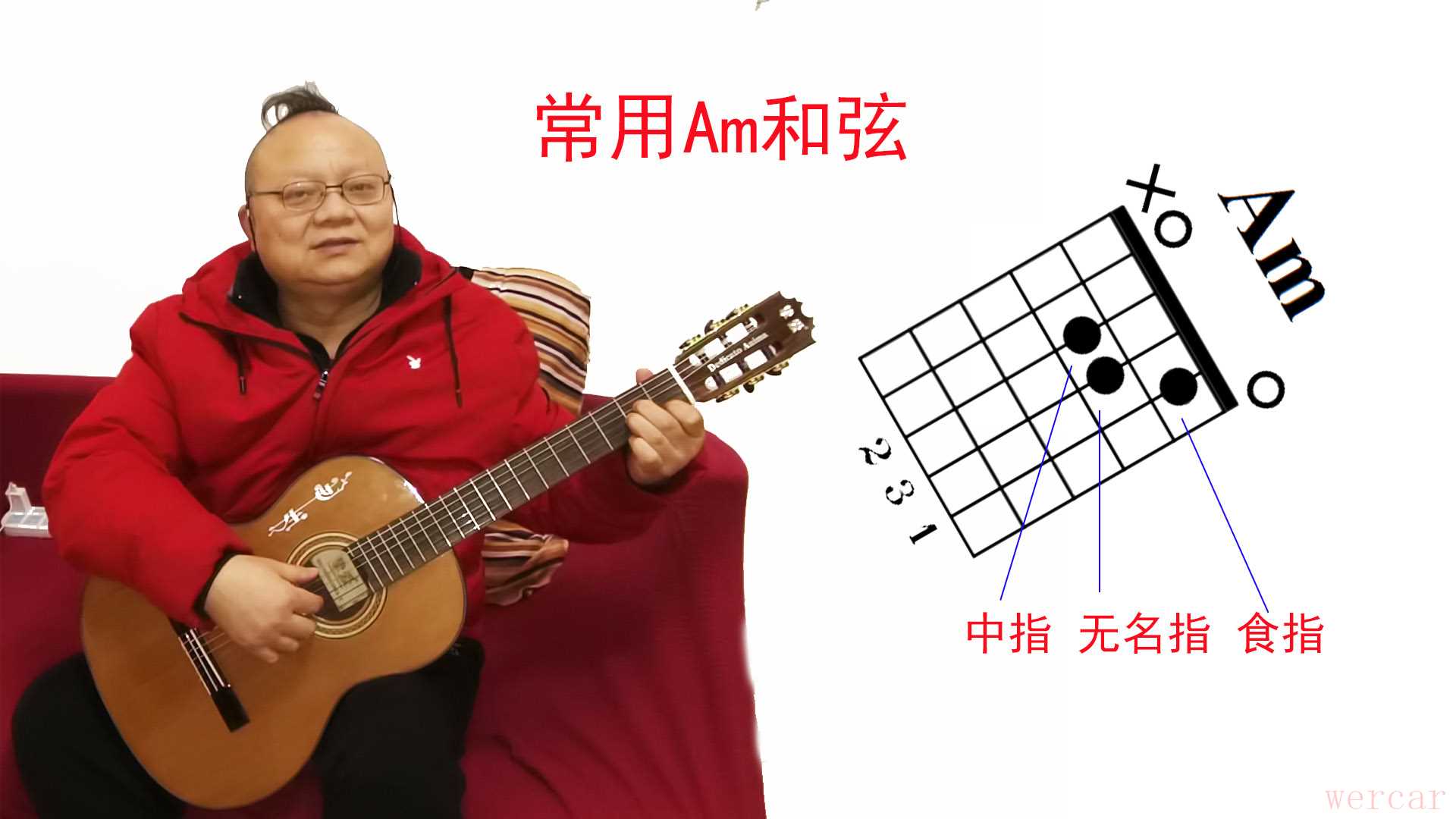 相比其它和弦的练习来说Am和弦比较容易按一些。具体按法请看下面图示。