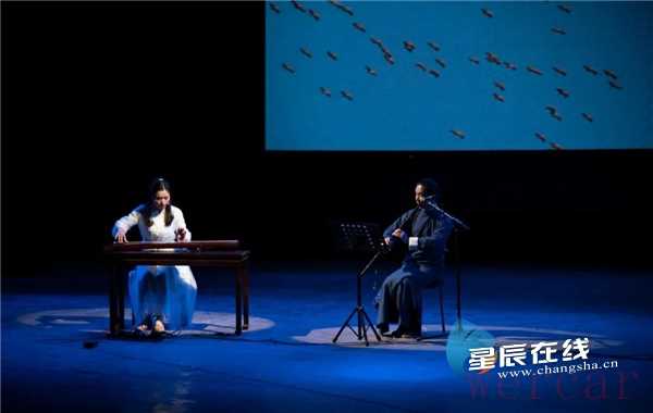 音乐会在中国器乐协会古琴研究会理事、扬州市桐林琴社社长张为的三首古琴曲中拉开帷幕。第一首《神人畅》是记载下来的唐代以前以"畅" 为题材的两首古琴曲之一,据传谱写的是"尧"以琴感动上苍,以期天神降临的祭祀故事,这正与湘楚大地源远流长的巫文化映衬,曲风苍古雄健;紧接着,《梅花三弄》以乐声勾勒梅花动与静的两种状态,风格苍劲,让人眼前仿佛开出一朵朵傲雪斗霜的梅花,想起中国文人超然物外的精神;高山流水遇知音,一曲《流水》,或是缓缓溪流,或是滔滔大江,奏出天、地、人相知相合,浑然一体的气象,同时也讲述着音乐会的含义——寻觅知音。