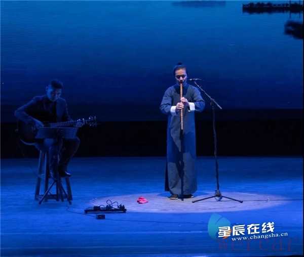 (西湖夜雨茗箫茶舍主理人、前岳麓书院编钟乐团首席箫师、聆心乐舍洞箫师魏军,与唐一山一起,共奏一曲《幻月》。)