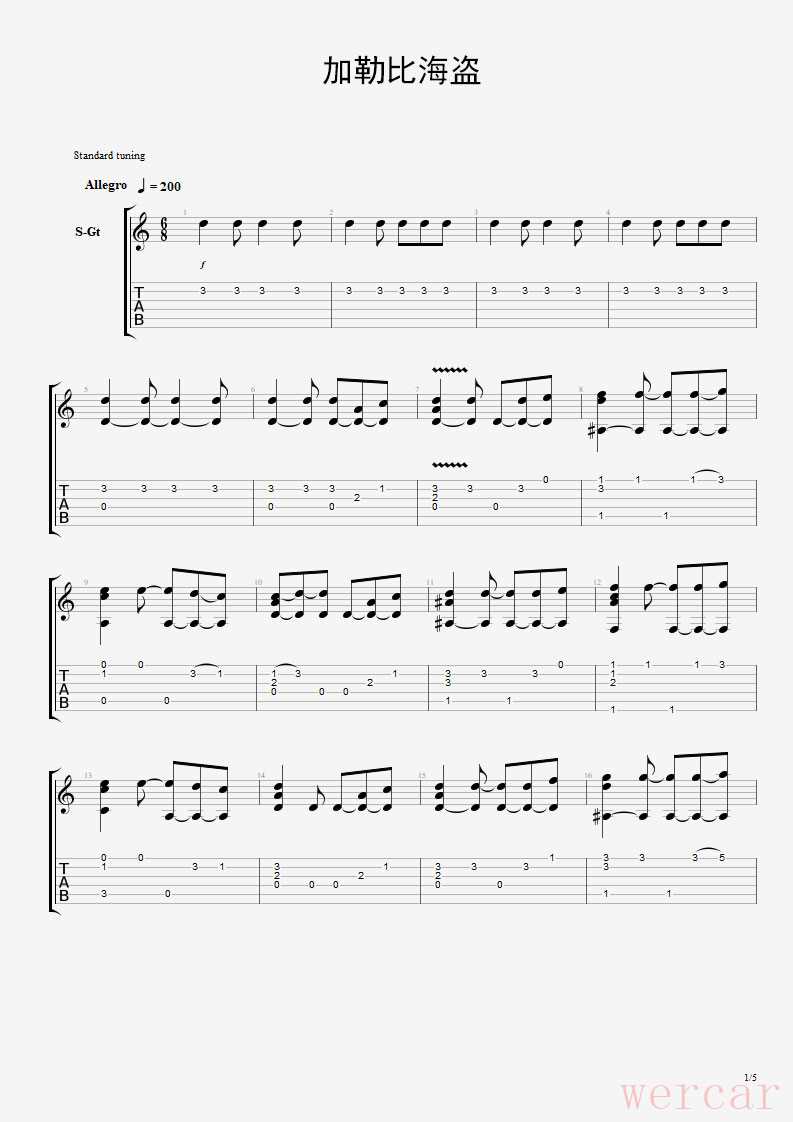 加勒比海盗经典旋律指弹吉他谱,轻松弹奏海上冒险之旅