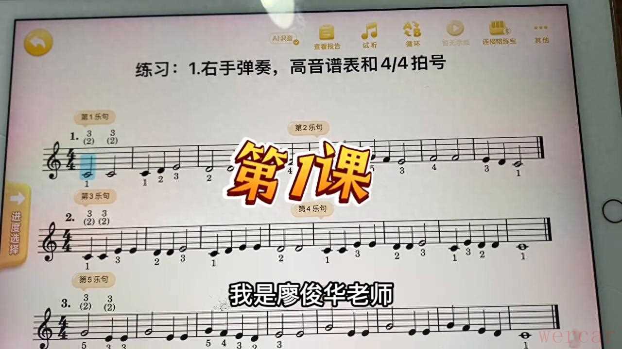 欢迎同学们继续回来,我是廖俊华老师,我们来学习钢琴基础教程。