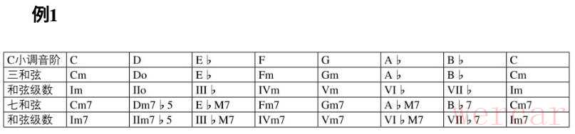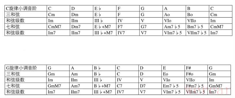 以下写出的小调的顺阶三和弦以及七和弦,其他调以此类推,每个调的和弦功能都一样。三和弦里,所有调的Im IVm Vm都为小三和弦,Ib VIb VIIb都为大三和弦,IIo都为减三和弦。