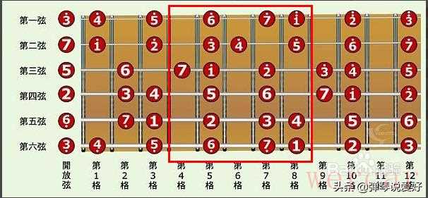 小技巧:我们学过调弦的都明白,六弦五品与五弦空弦为同一个音拉,五弦五品与四弦空弦来是一个音,四弦五品与三弦空弦索为一个音,三弦四品稀与二弦空弦为同一个音,二弦五品与一弦空弦为同一个音,这样你记音阶就很容易了。
