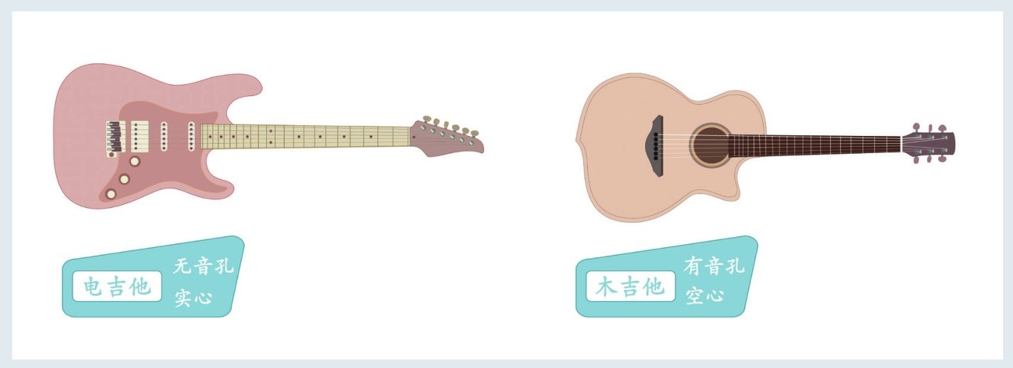 电吉他是靠拾音器拾取声音发声,而木吉他是靠琴体共鸣产生声音,所以电吉他需要音箱等周边设备来扩声,而木吉他不用,它的琴体就是天然的扩音设备。