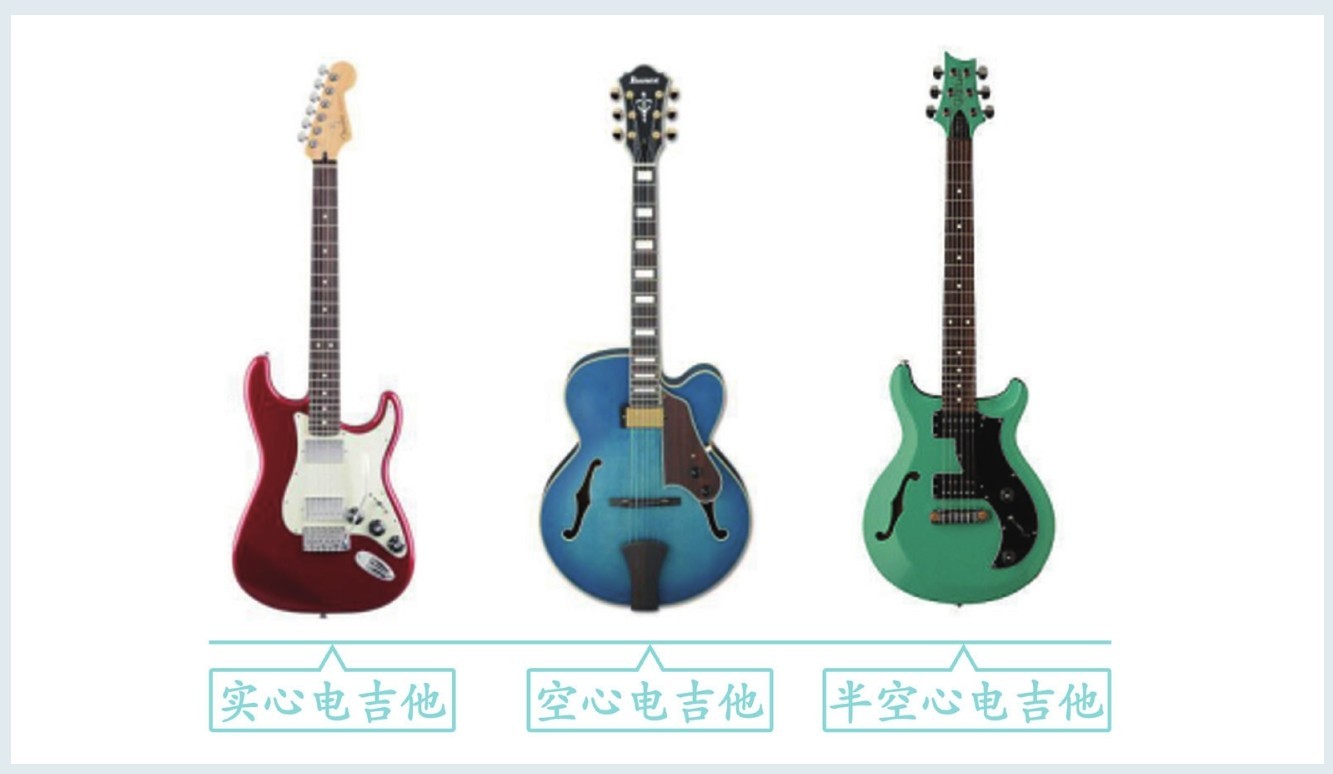 我们根据电吉他的桶形结构把它分为三大类,分别是实心电吉他、空心电吉他和半空心电吉他。