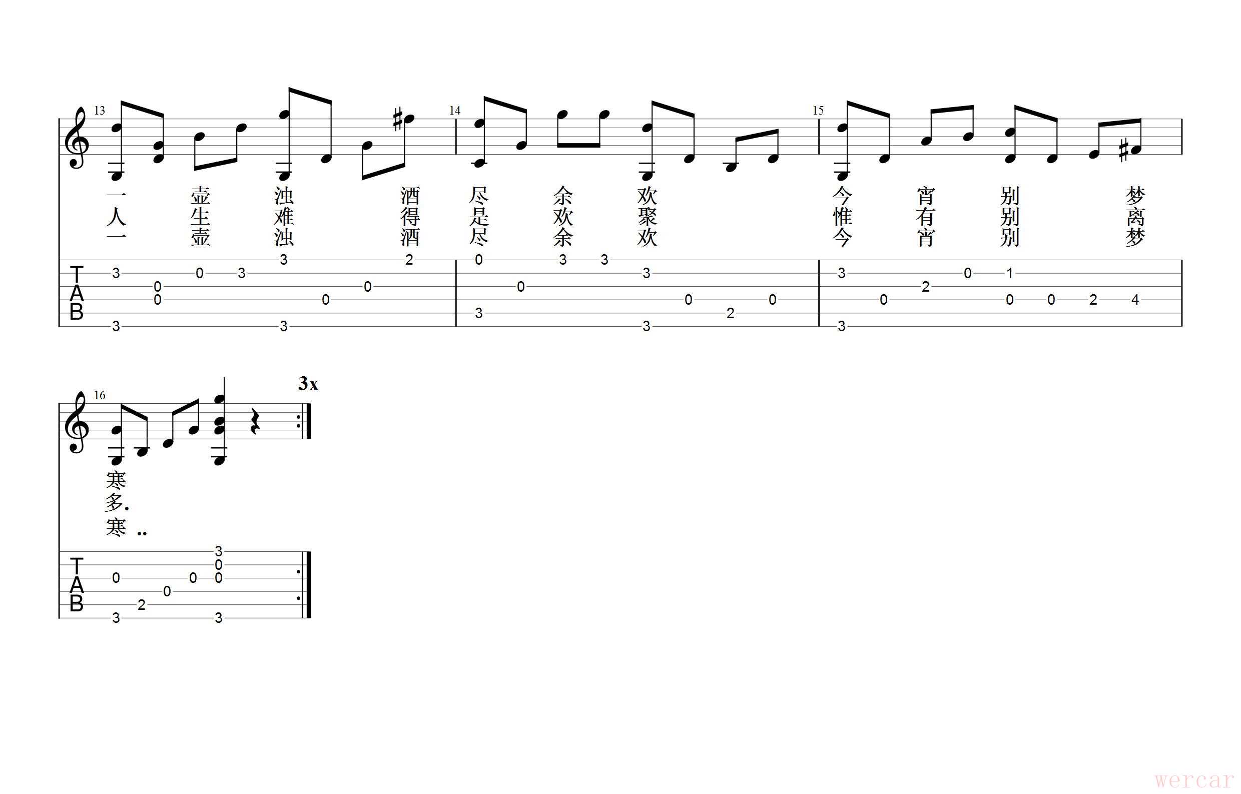 此版本吉他谱属于独奏曲谱。没有特别的难度。
