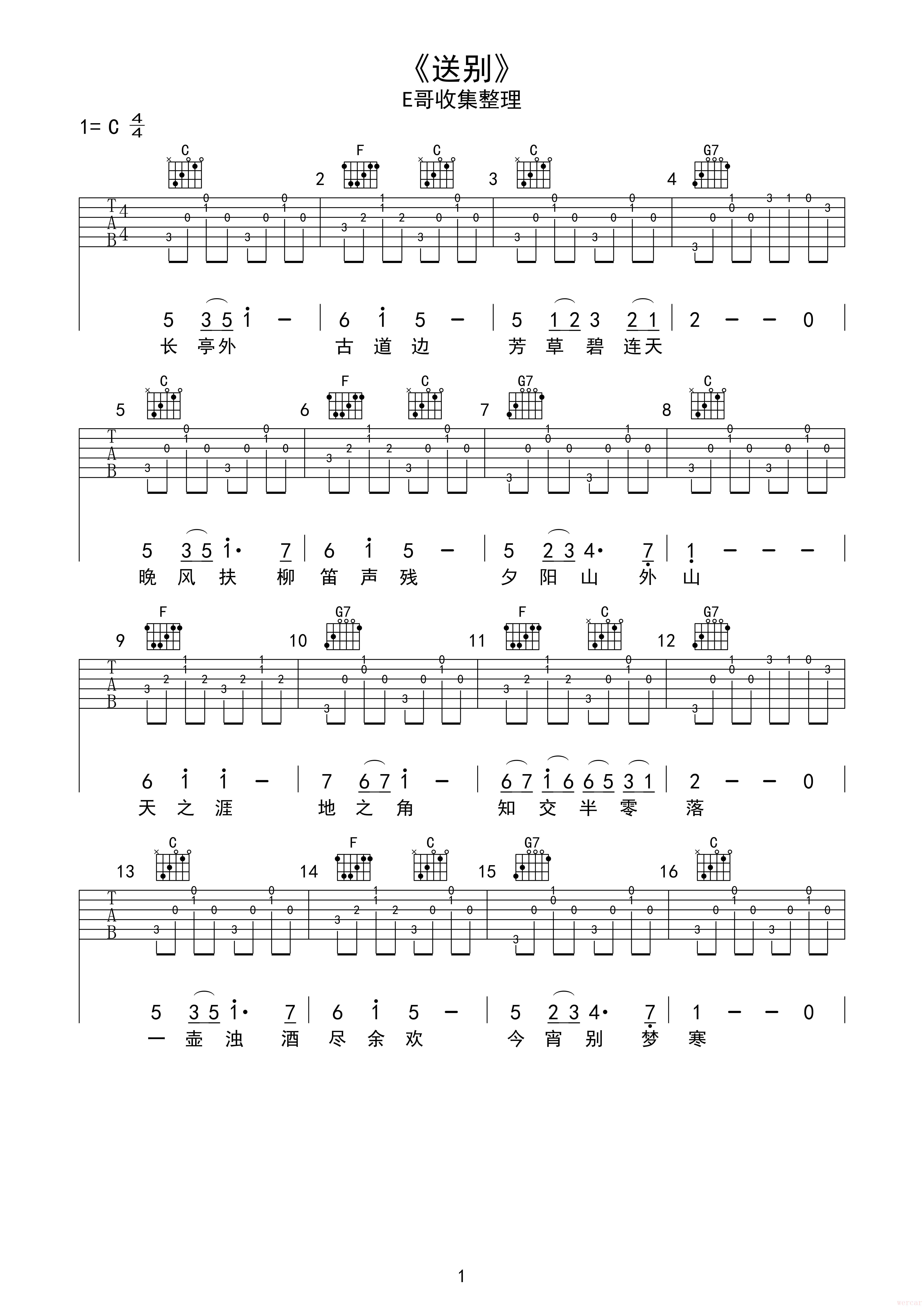 上面分享的是入门吉他《送别》的简谱六线谱对照弹唱版本和分解弹奏乐谱及指弹乐谱。这里一并收集整理且分享大家一起交流学习,希望大家多多赞赏分享并留言!