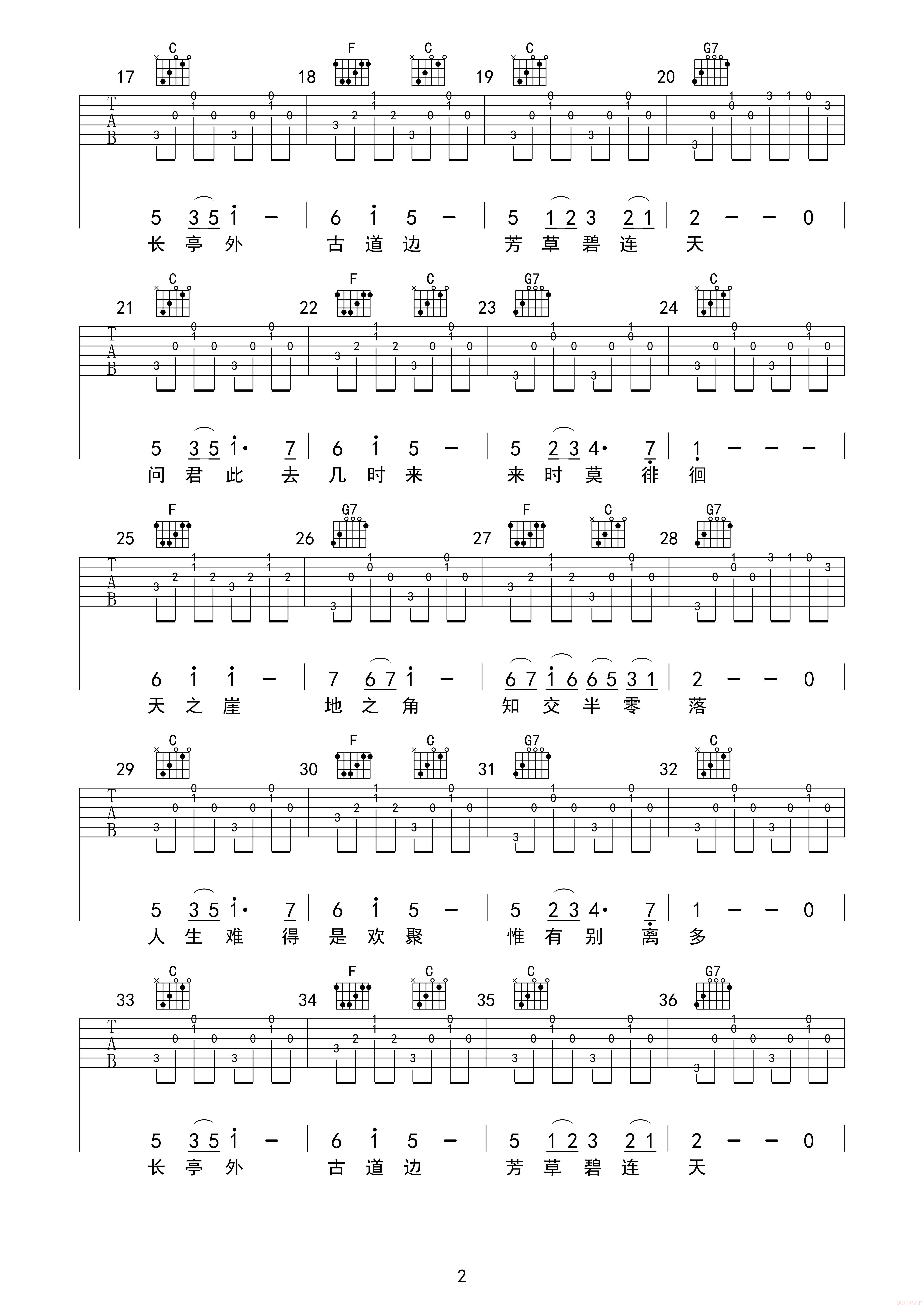 此版本是《送别》C调吉他弹唱版本。只需要学会C、F、G7三个和弦即可。但由于F和弦比较难的原因。所以这个曲谱入门学习也需要反复练习。