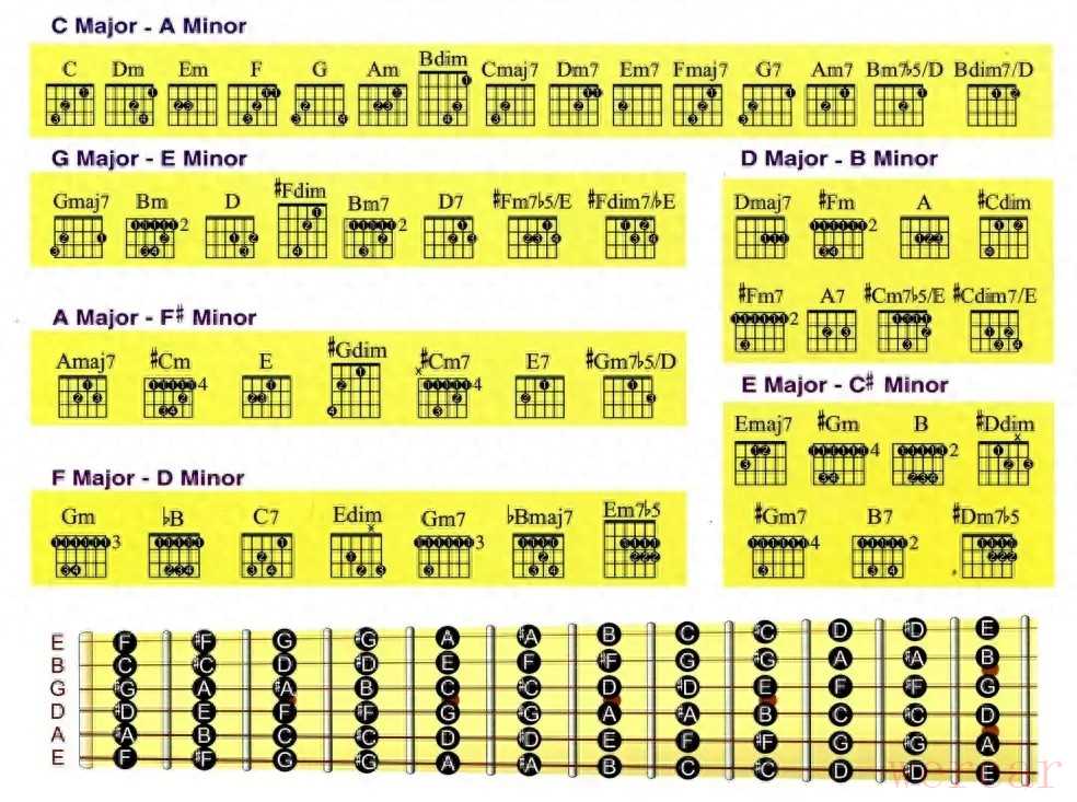 准确说,怎么快速在吉他上弹出各个大调的SOL指型