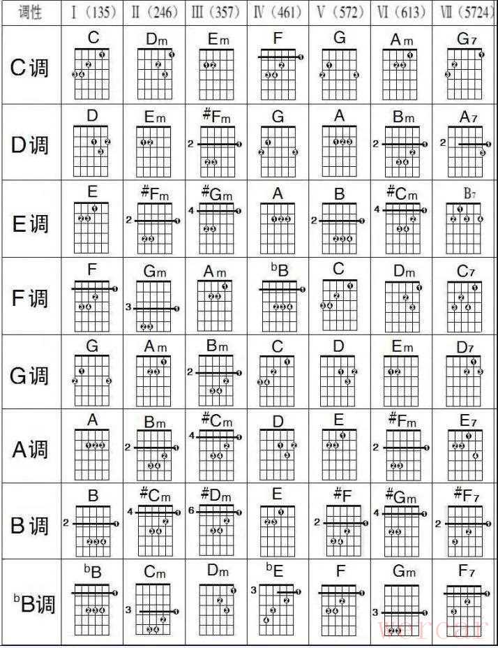 我们在自弹自唱时变调夹越往高夹音色就会比较单薄不太好听。除非你有乐队伴奏 。夹的越低琴弦共振就越多,这样就更好听。到底要练习多少个和弦呢?只需要练习3个大调和弦,并且把重复的和弦全部删除,一共只要13个和弦指型,就能玩转12个大调的歌曲。