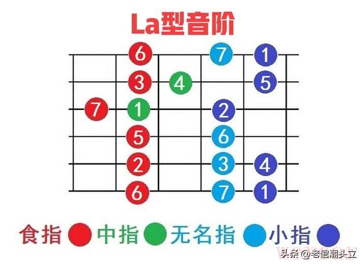 这么一套操作下来,平移到五品的新音阶,就是我们常用的La型音阶,根本不用死记顺序,省出的时间全用来练手感!