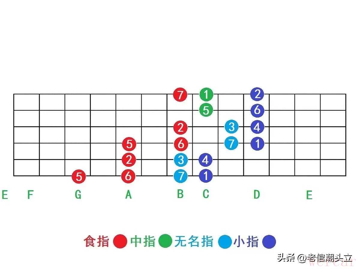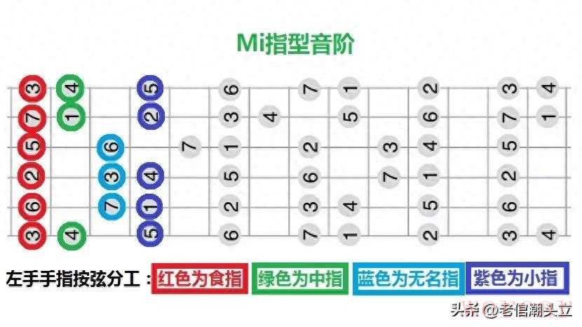 而且等你把一个调学到十二品就会明白,音阶练习其实没那么复杂。每根弦上的音就三种指型:半全型、全半型、全型。平时爬格子的时候,就盯着这三种练,练熟了音阶这块基本就没问题了。