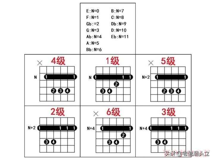 这三个阶段练完,你就会发现自己慢慢掌握了音阶指法平移,和弦手型平移的技巧我下面讲,到时候常用调之间想怎么转就怎么转,灵活得很。