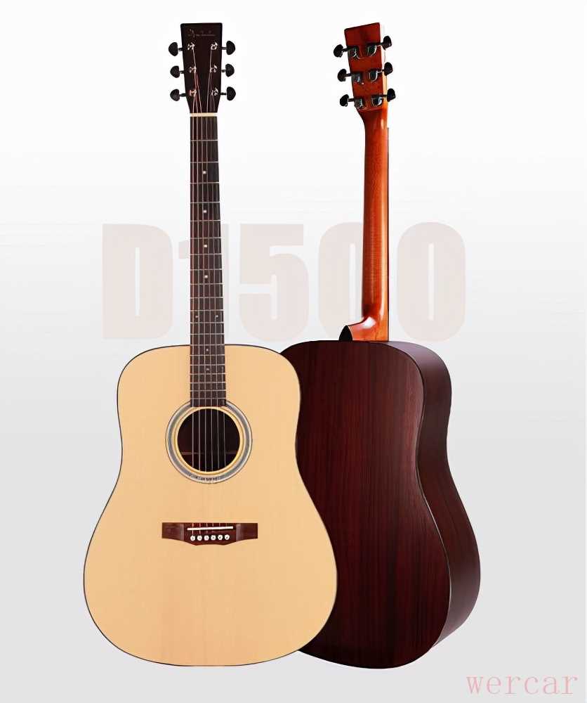 Yairi D1500(1580元)Yairi也是日本的一个老品牌了,价格优美的面单吉他,同等价位的面单琴中算不错的,音色音质都还可以,共鸣效果出色,适合范围广,无论指弹还是弹唱都可以满足需求。