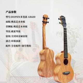 多斐恩DOPHN AR600 桃花芯木全单,搭配碳素琴弦,音准音色极佳,音色整体温暖偏亮,中低频共鸣十足,弦距合理,按弦很舒适,整体手感很好,无论是入门还是进阶,都非常适用。这款尤克里里有三个颜色,原木色、彩虹兰和孔雀蓝,外观颜值非常高。