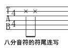 八分音符的符尾连写,连在一起的符尾称作符杠。每个音符弹奏1/2拍。