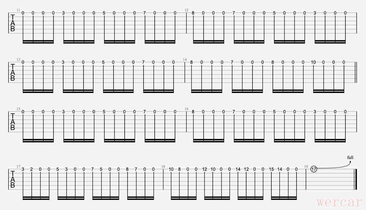 在开始之前,我们需要先了解今天的主角—— E自然小调音阶(E-F#-G-A-B-C-D),因为今天所有的乐句都在E自然小调内。