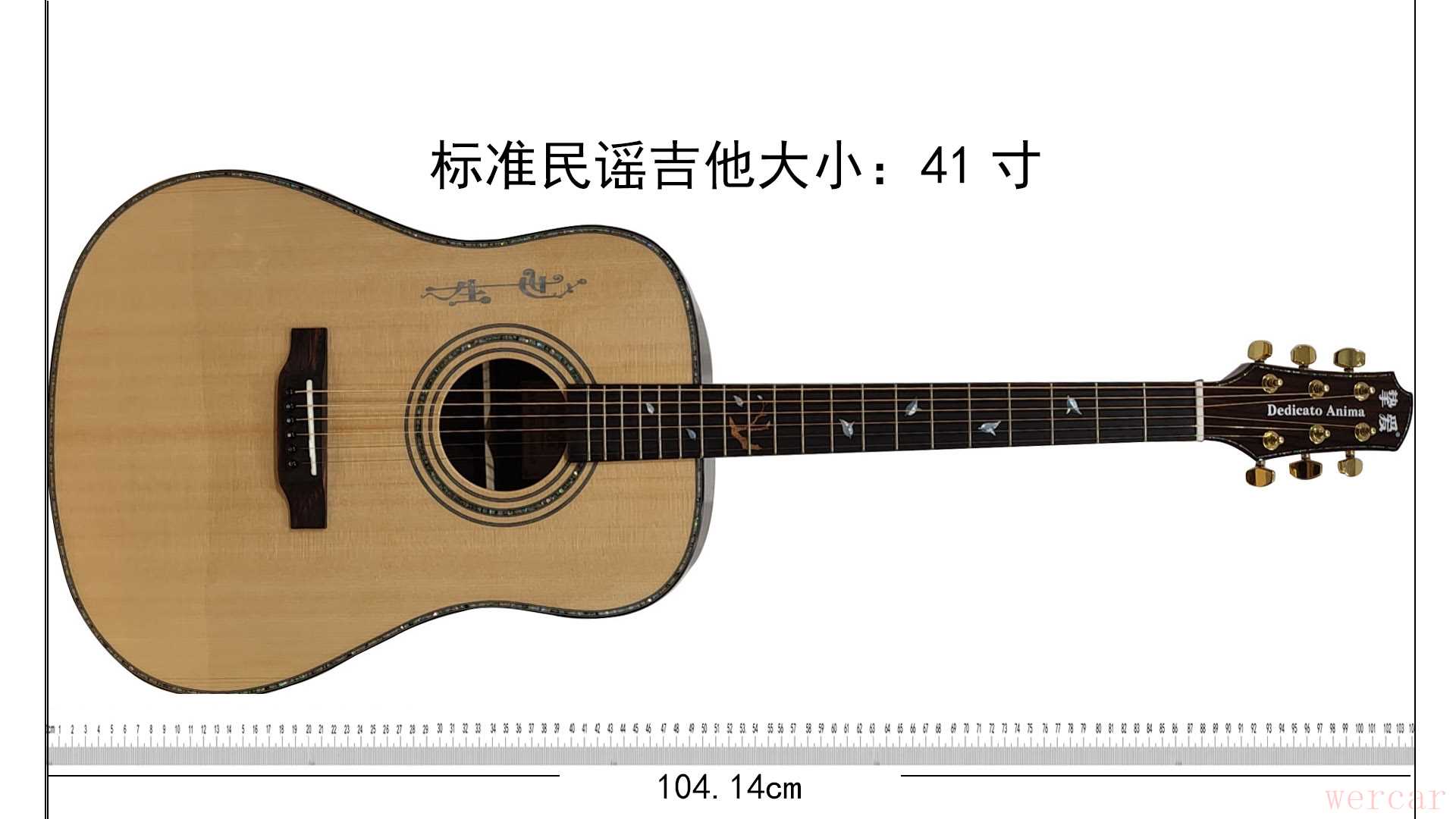 2、41寸(就是104.14厘米)是民谣吉他的标准尺寸。也是现在演奏民谣吉他的标准尺寸。适合165CM以上高中生及成人学习及表演弹奏。