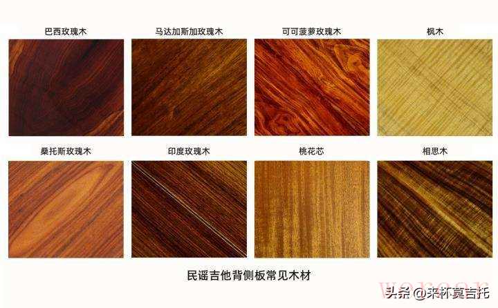 背侧板:桃花芯木音色暖柔、高频突出;玫瑰木低频浑厚、层次丰富。两者搭配常见于入门琴,高端琴多采用全玫瑰木提升音色深度。