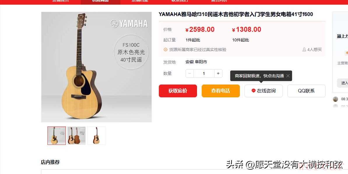 在吉他之中,有我们普通人可以接触到的吉他歌手,陈楚生当年在2007年参加《快乐男生》时弹唱《姑娘》使用的吉他,就是一把当年价值660块的雅马哈F310。当然18年已过,这把吉他当下的售价是1308元。这个价格是有保障的,一般来说雅马哈的吉他是我们普通人业余爱好首选。我自己的吉他也是雅马哈。