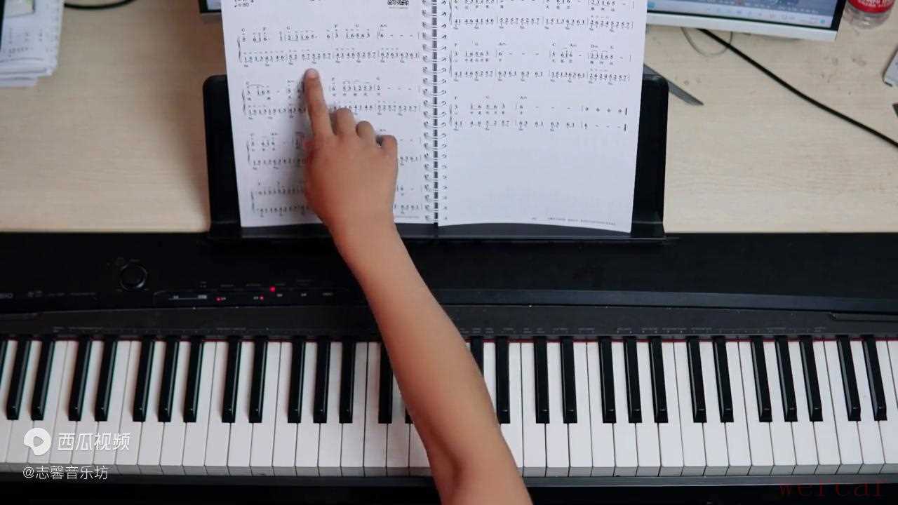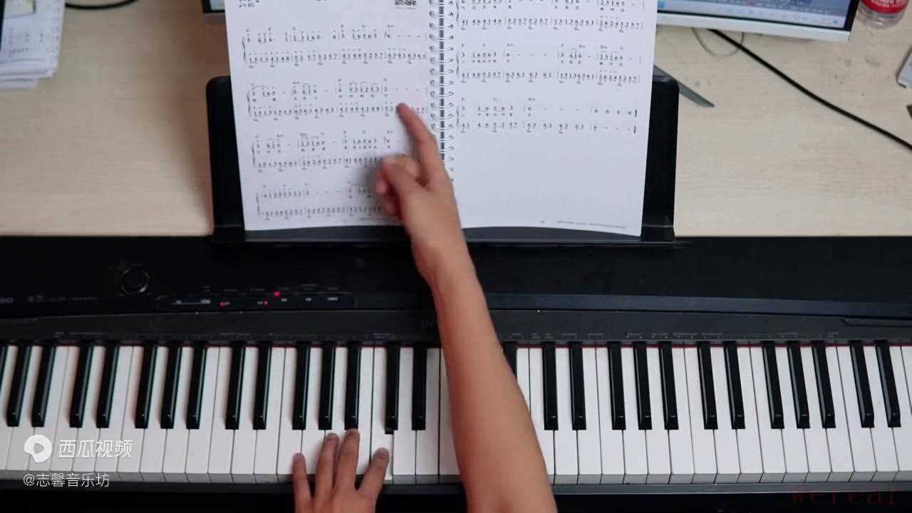 直接的来弹,既简单又好听。只需要大家把左手伴奏的规律找到右手的旋律练手,然后慢慢的一小节一小节的进行合作,熟练了之后再放到一起,慢慢的把这首歌曲。练熟练就可以了。
