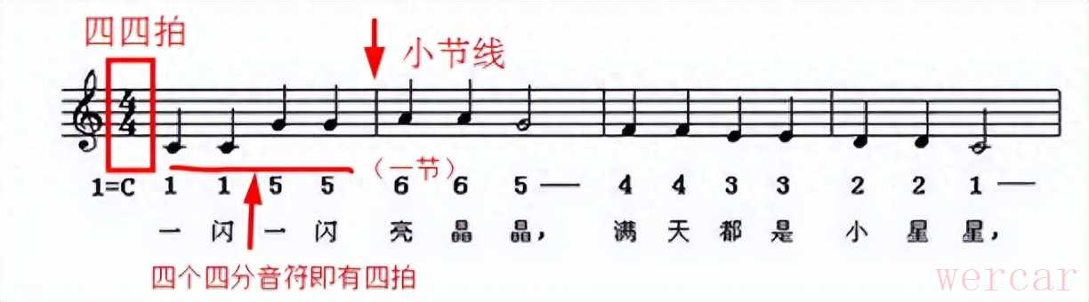这个会出现在曲谱的最前面或者是上方,一般是4/4、2/4、3/8,分别读为四四拍、四二拍、八三拍。