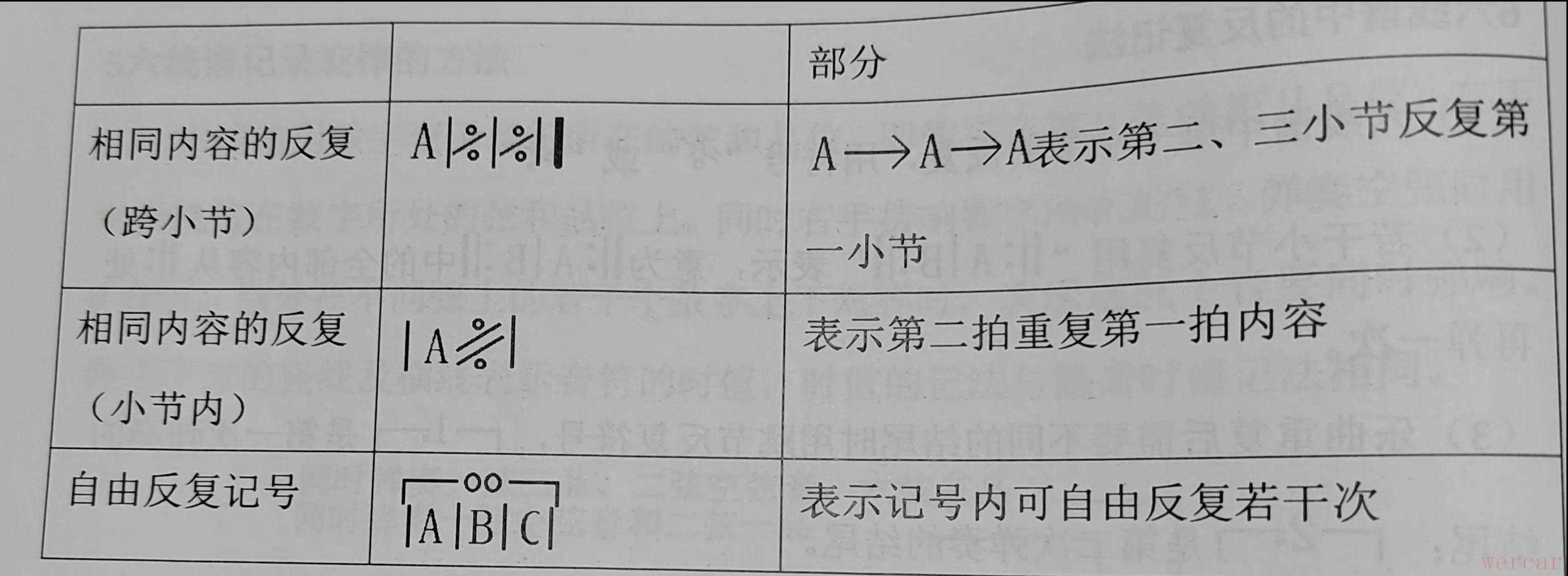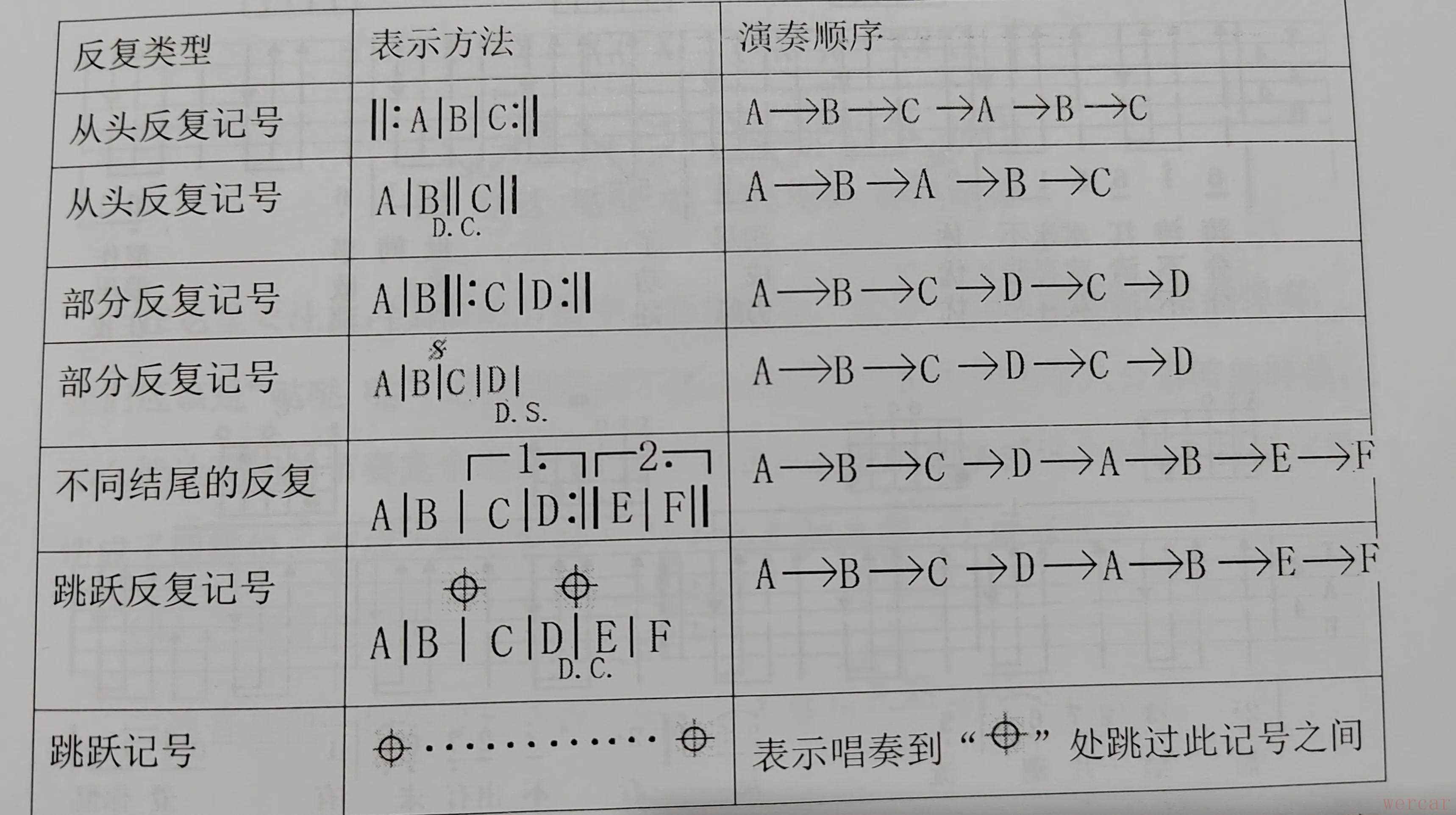 以后会练习好多吉他六线谱,每首歌曲都有反复演奏的记录旋律,归纳如下图: