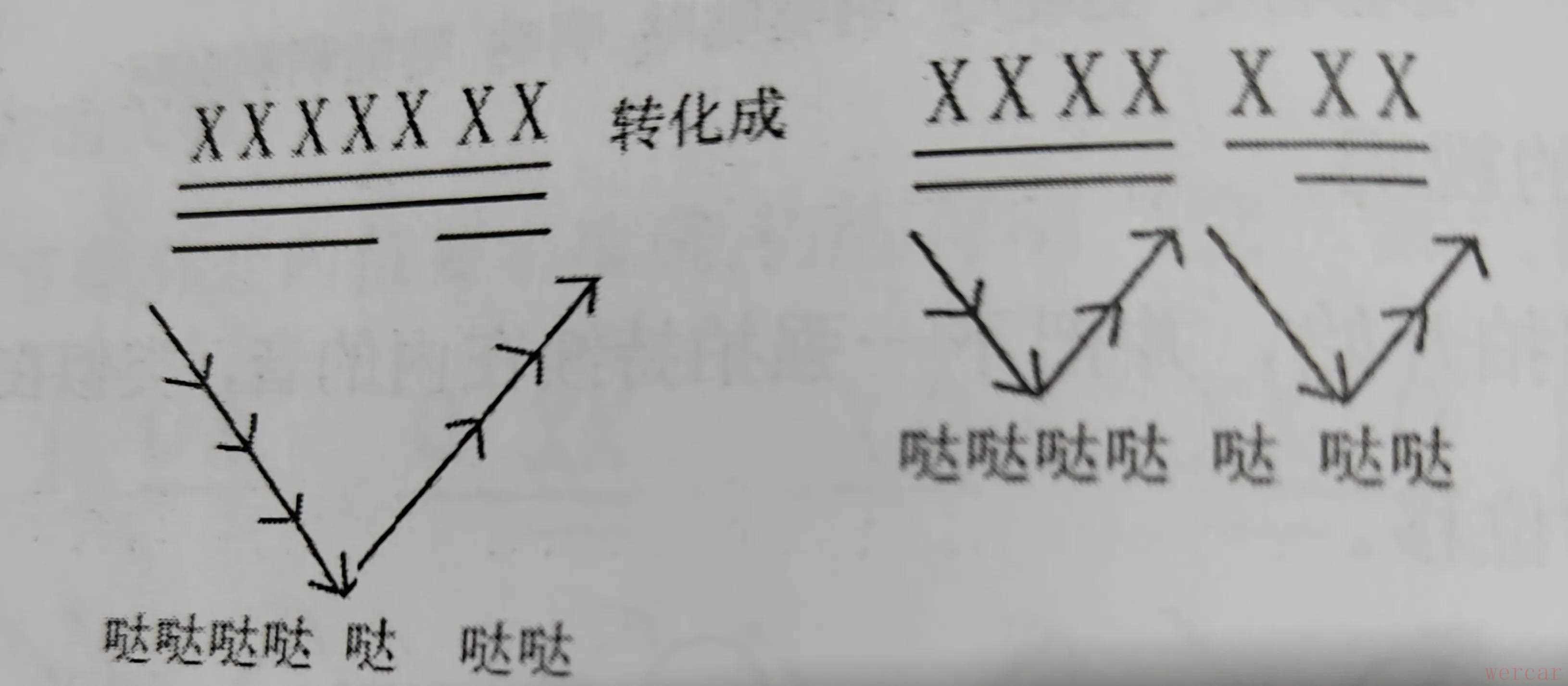 是由简单节奏提高速度、增加音符而形成,可以把复杂节奏化成简单节奏练习如下图。