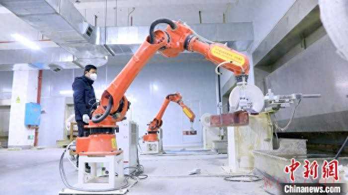 机器臂正在对吉他进行打磨抛光处理。邓卓 摄