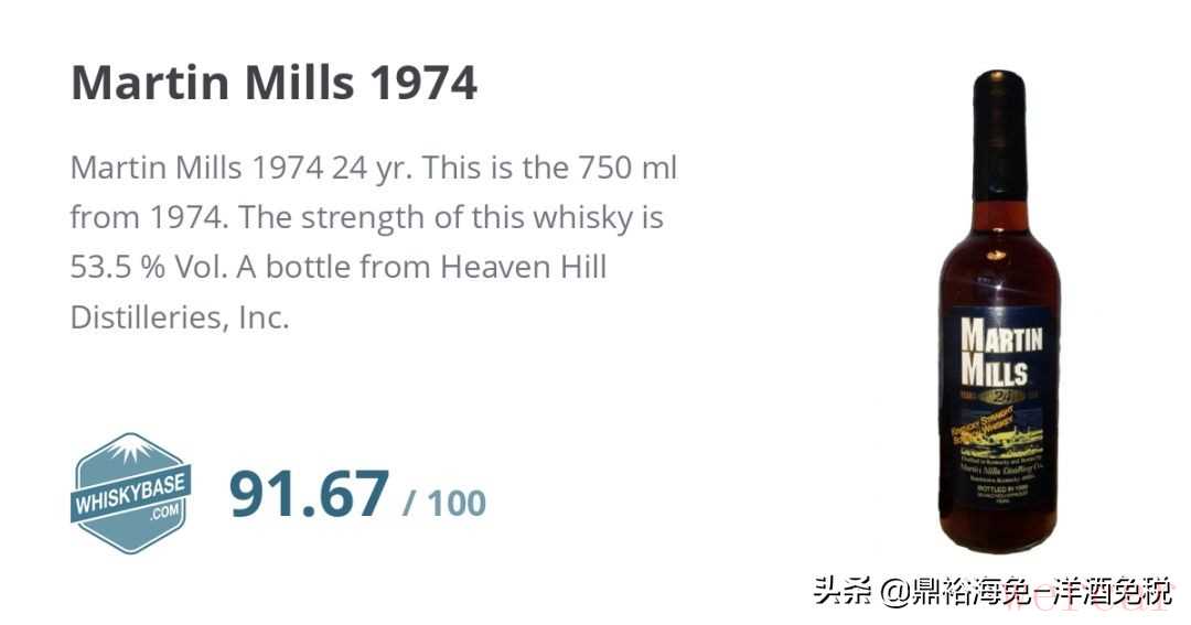 这款酒虽然差劲,但背后的天堂山(Heaven Hill)蒸馏厂,老有名了。专为日本出口市场输送威士忌,知道它是因为一款叫做Martin Mills 1974的酒,一直活在传说中,国内均价在3.9万元左右,经常能在”此生必尝的XX款昂贵波本威士忌“之类的榜单见到。