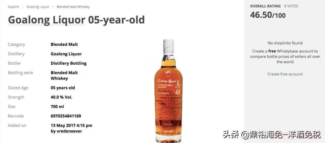 中国威士忌(果然)也榜上有名,来自湖南高朗酒厂的5年调配的威士忌。