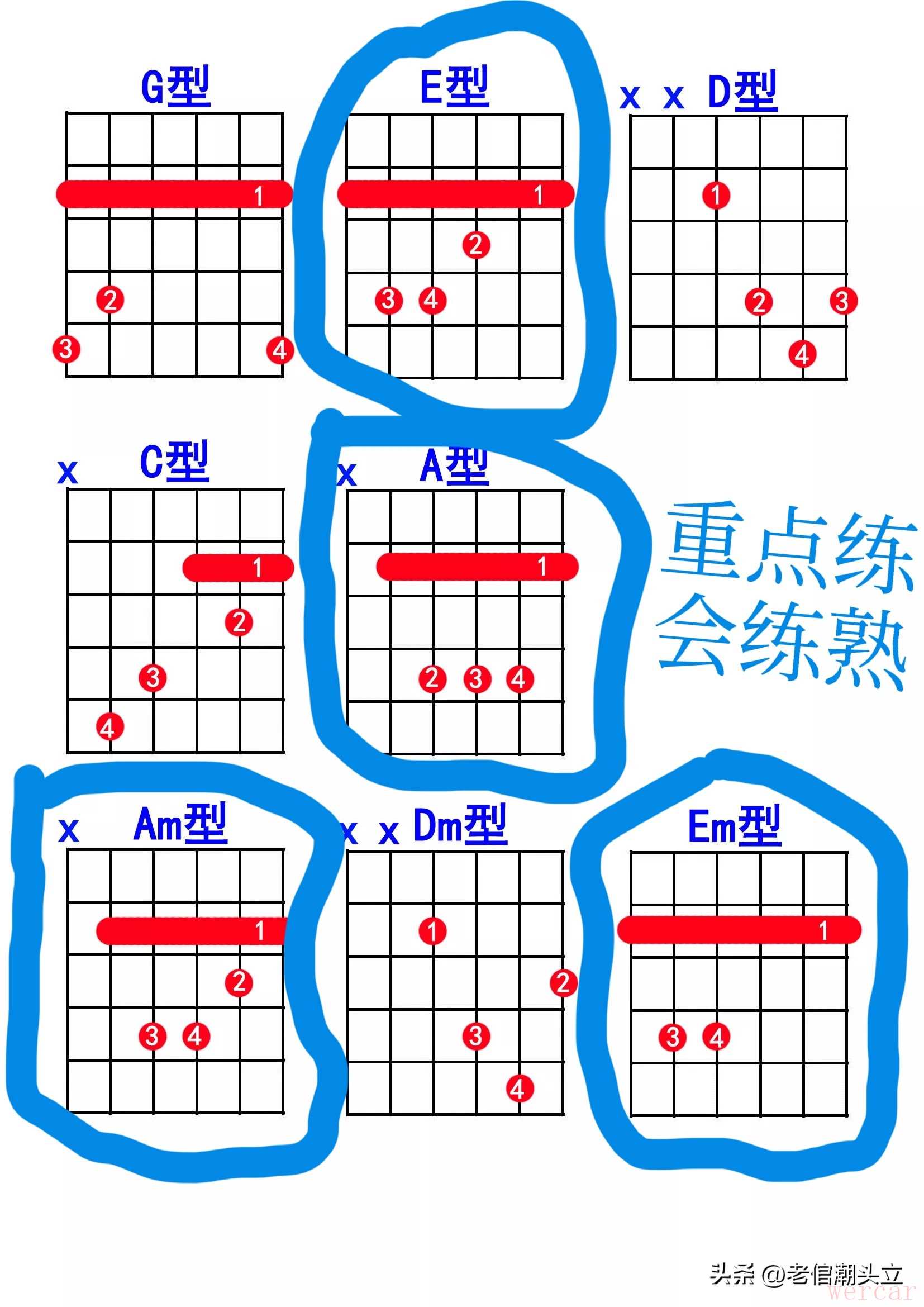 学会玩C调,C、Dm、Em、F、G、Am这六个和弦都会了吧?