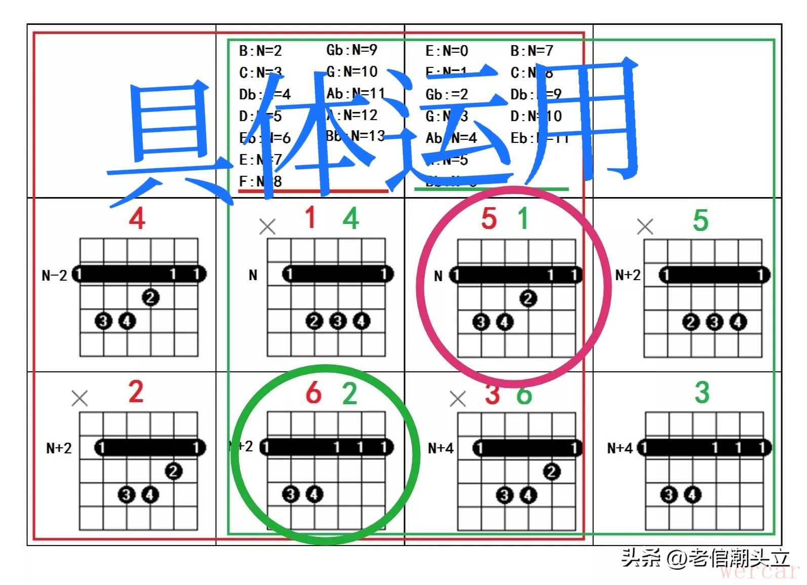快速掌握常用十二个调大小三和弦思路,把我们的左手食指当“变调夹”,在吉他1品到12品按上面思路来构建大小三和弦,是不是就得到CDEFGAB#C#D#F#G#A共12个音的大小三和弦按法?